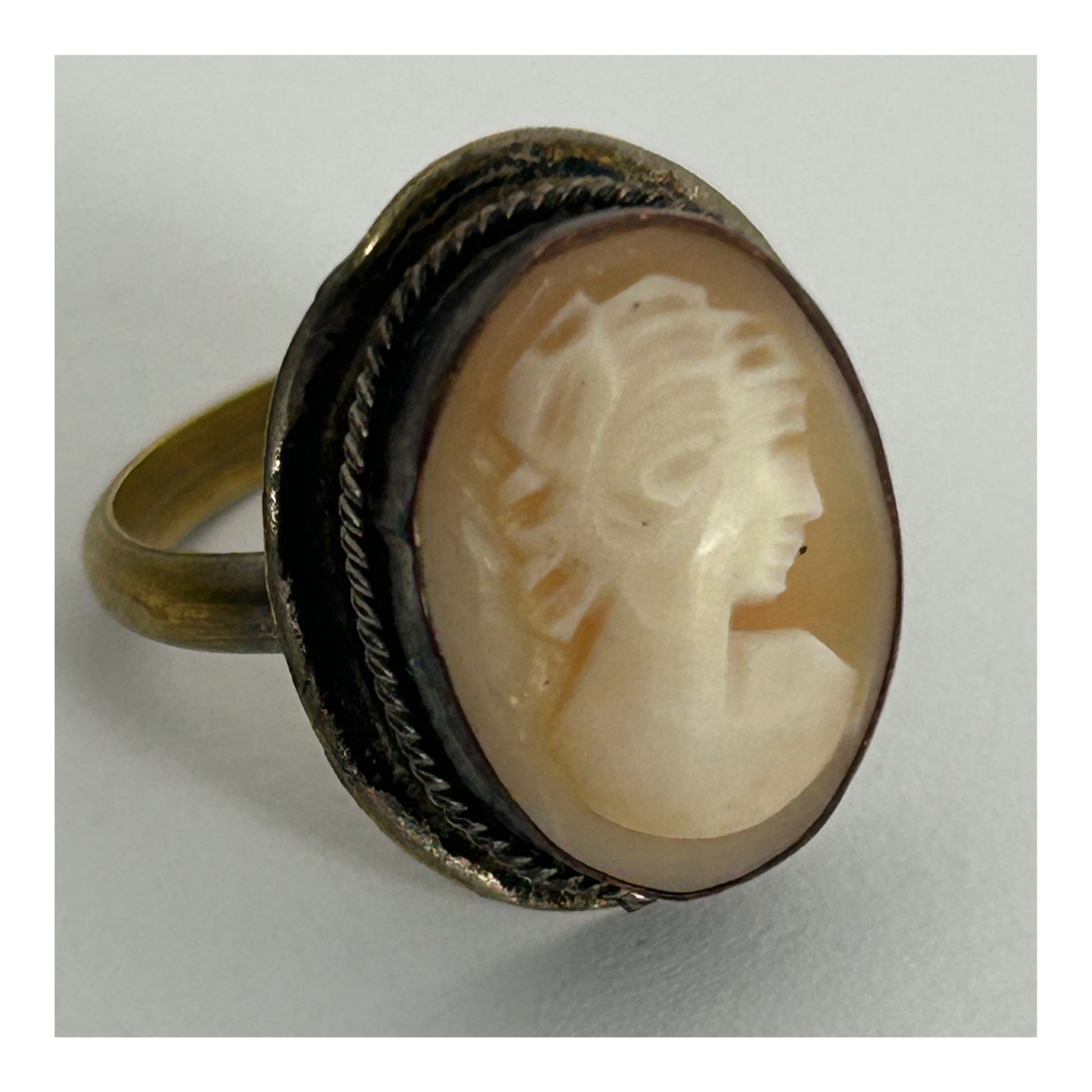 Antique Victorian Pinchbeck Real Shell Cameo Ring Size O