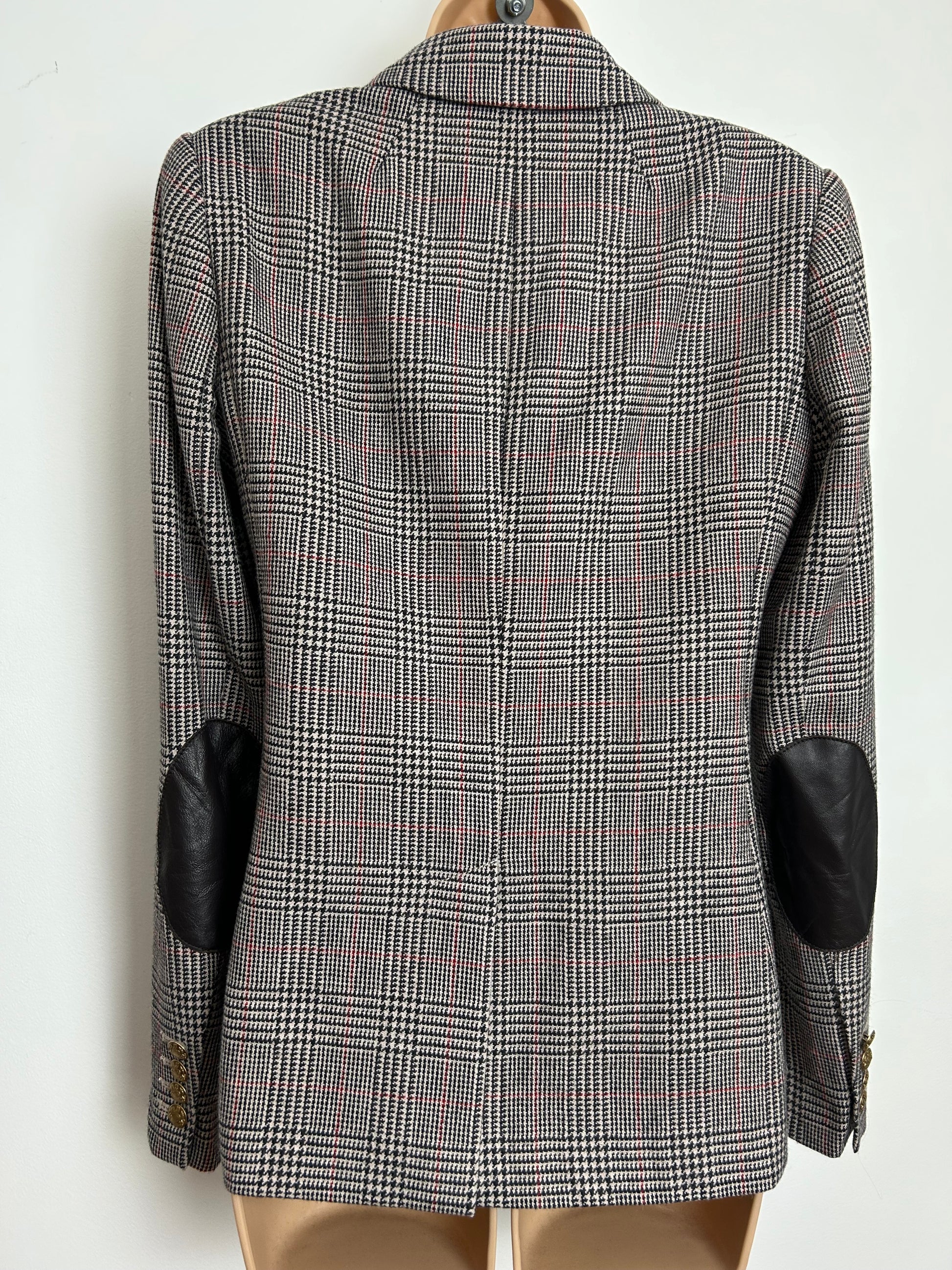 Modern J Crew Size 10 Houndstooth Check Wool Mix Blazer With Elbow Patches