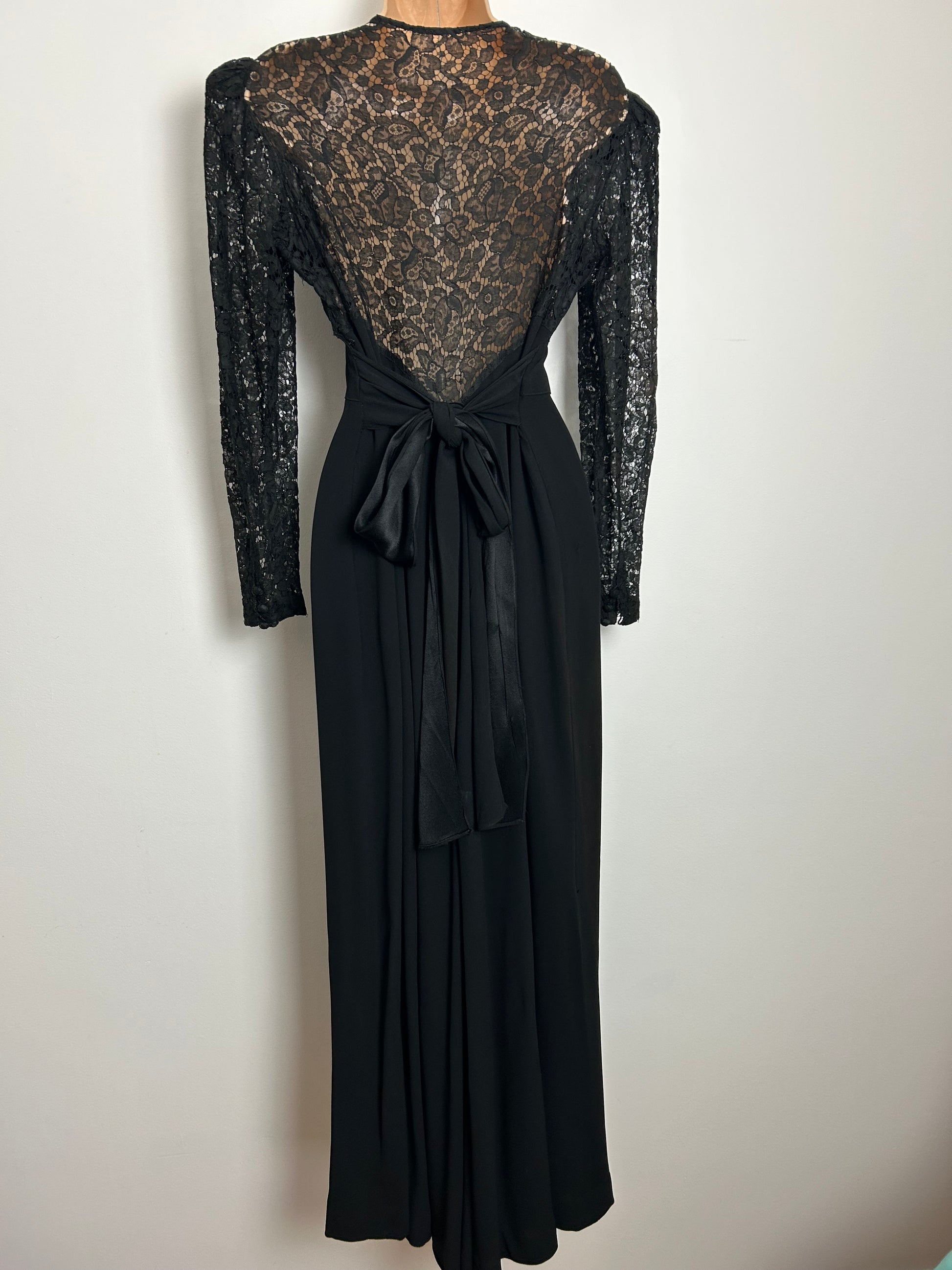 Vintage 1930's 1940's Size 14 STUNNING Black Lace & Satin Backed Rayon Evening Occasion Gown