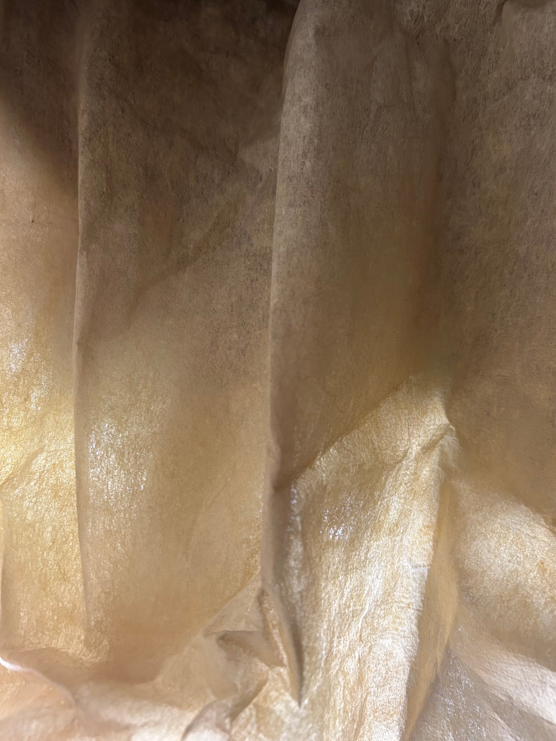 It has a below knee length pleated flared skirt that is lined with a thick paper gauze like fabric that was typical of the era.