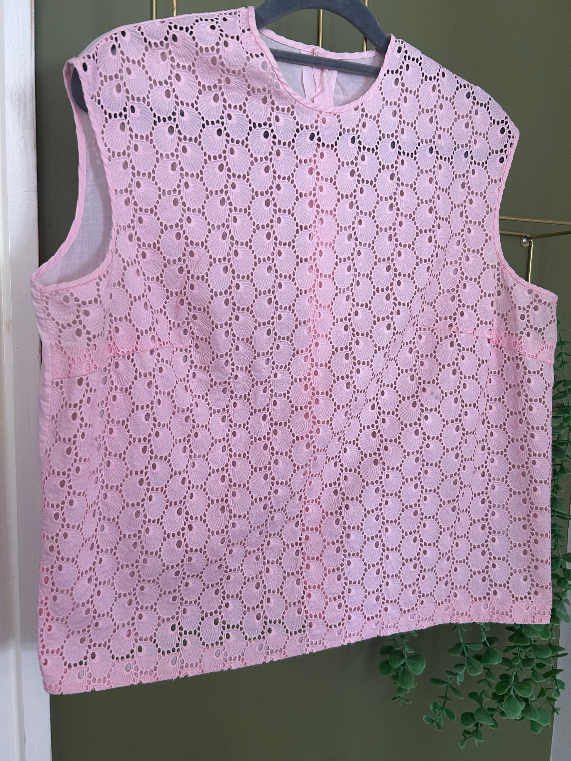 Vintage 1960s Approx Size 14 Pale Pink Lace Fronted Button Back Sleeveless Top