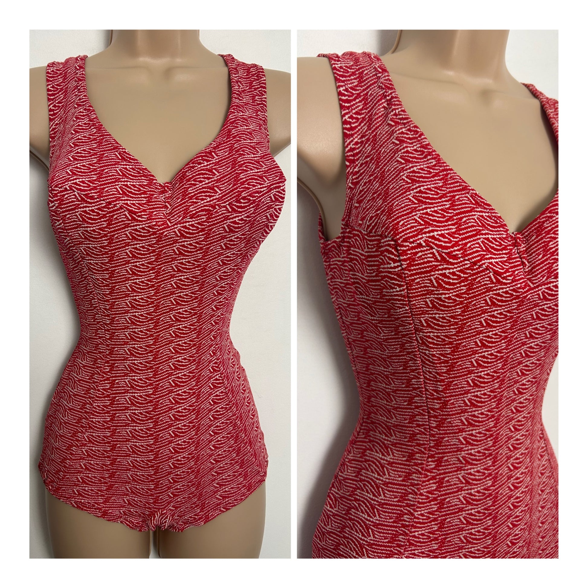 Vintage Late 1950s BALNEA PARIS Size 10 Red & White Pattern Padded Cup Swimsuit