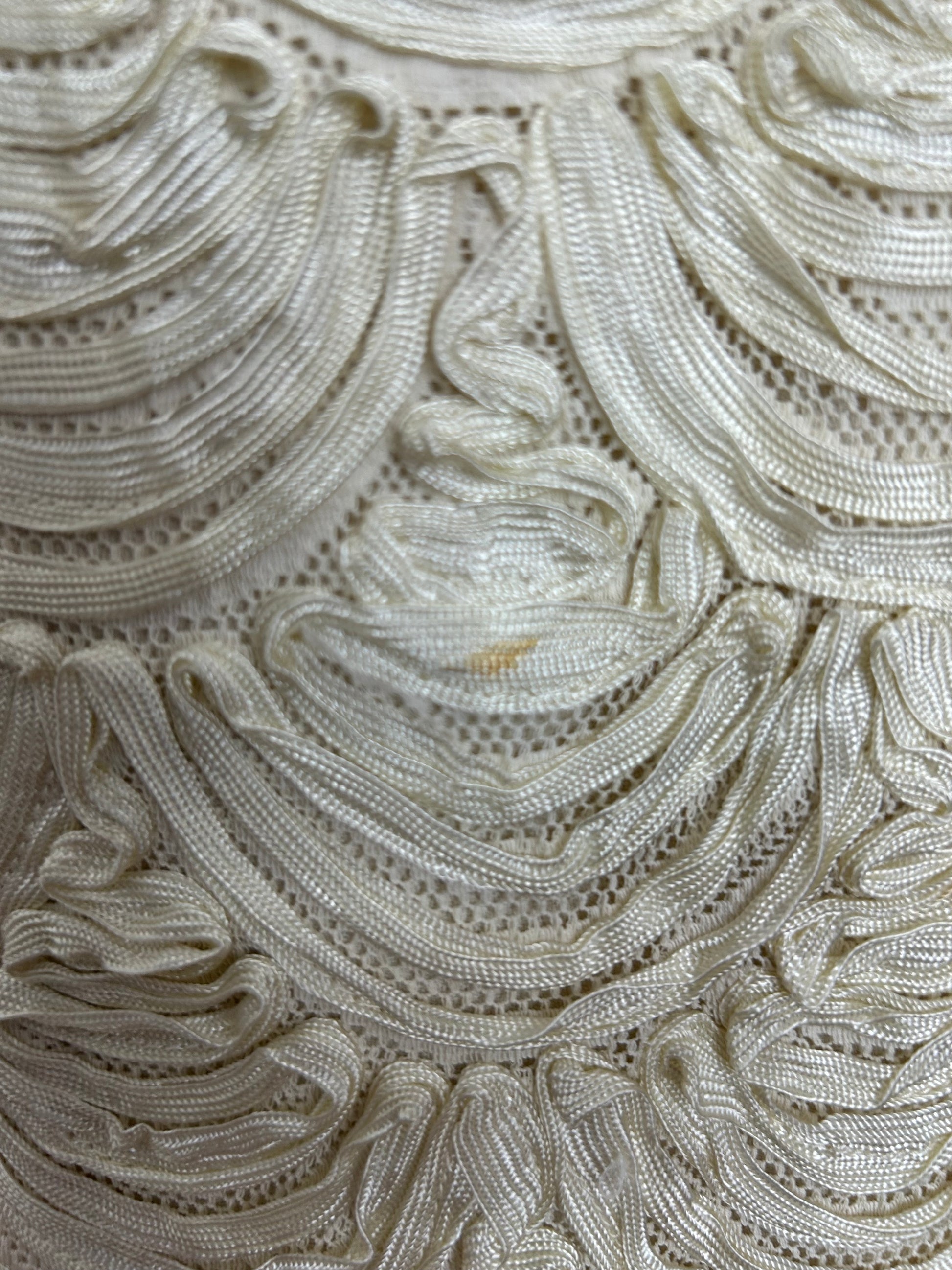 This lovely vintage occasion dress is made from a Infrosuisse Charmont fabric in cream.