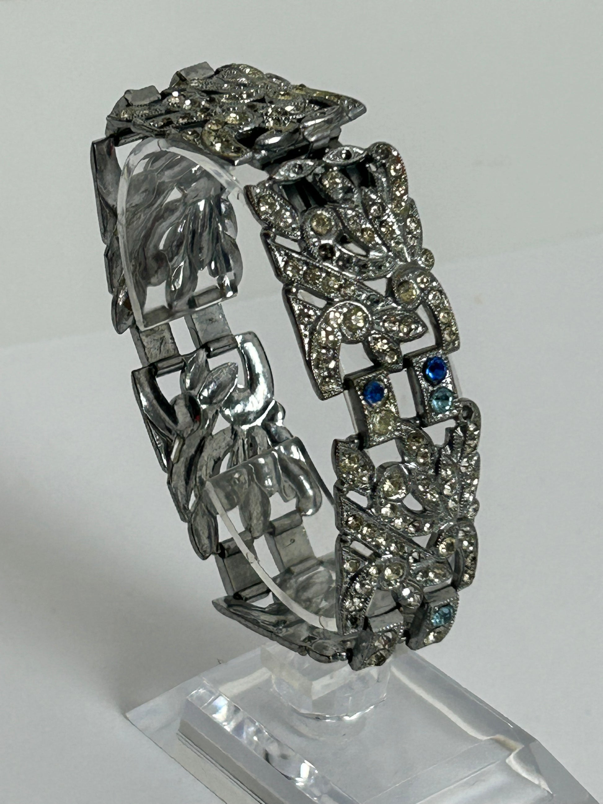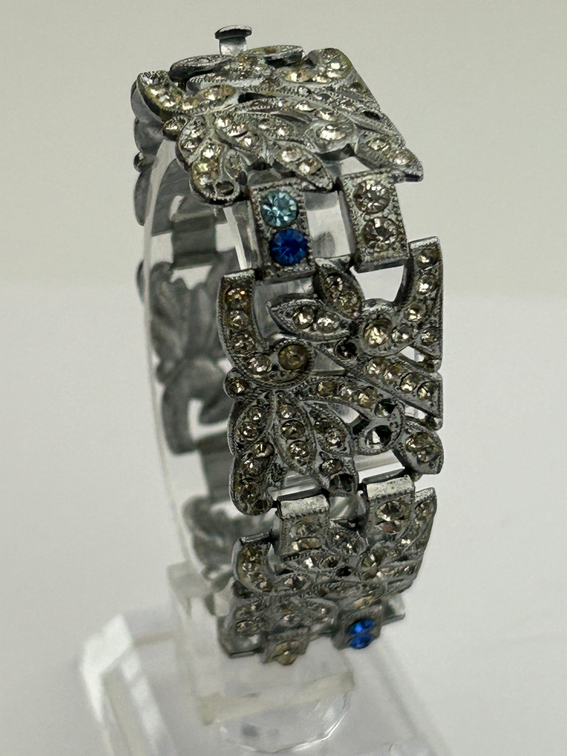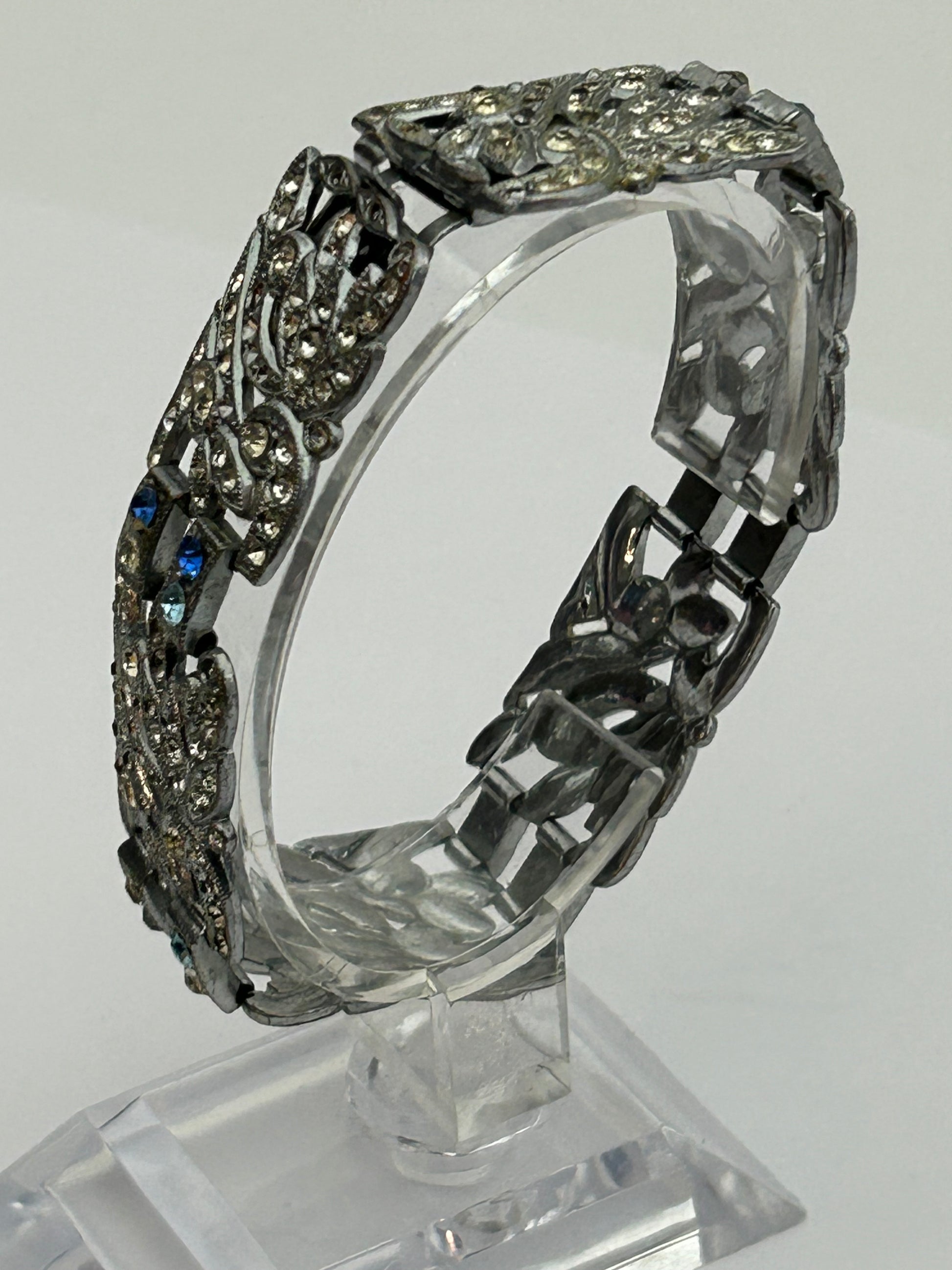 Vintage 1960s Silver Tone Paste Diamante Panelled Bracelet - Please Read