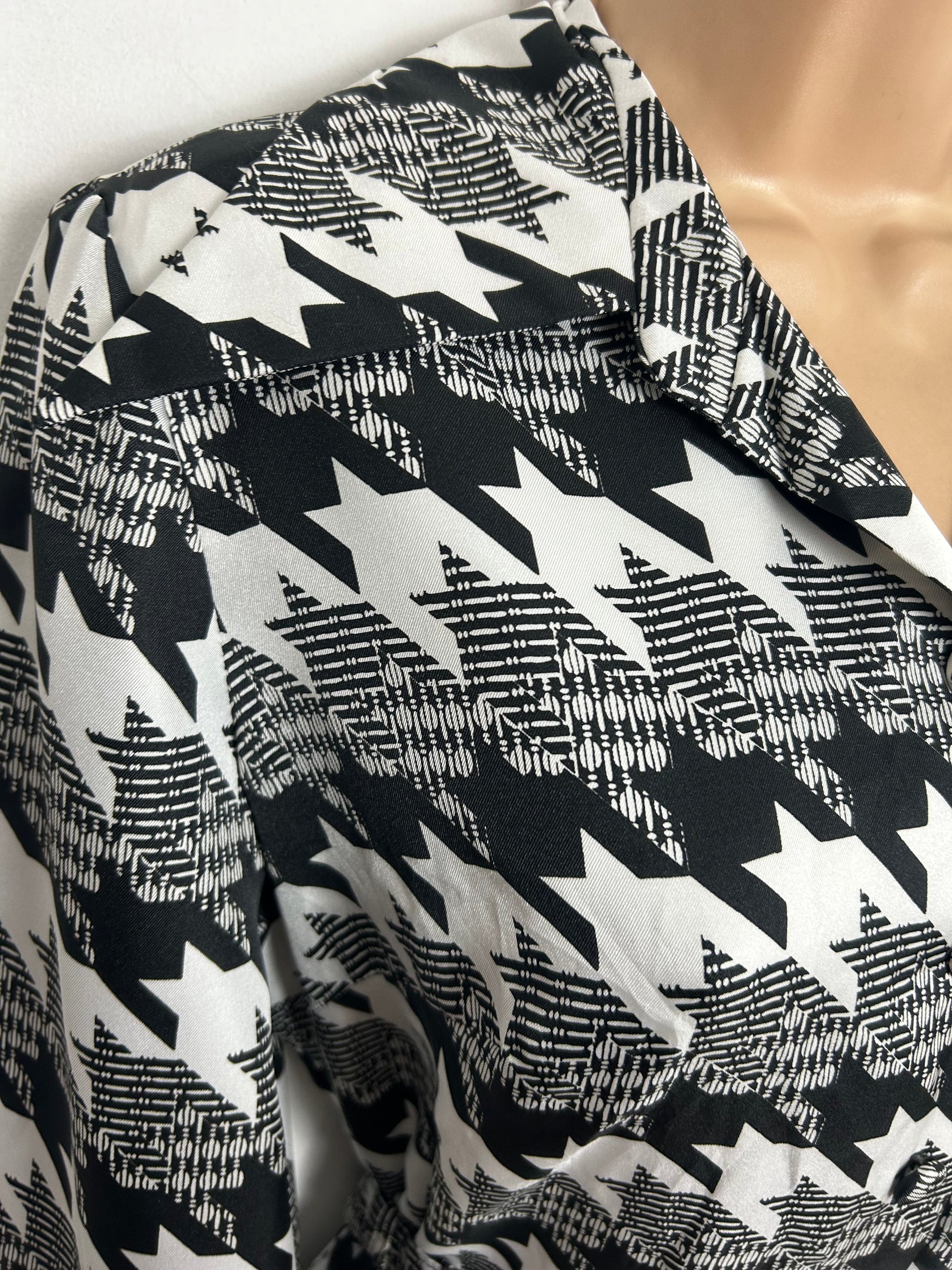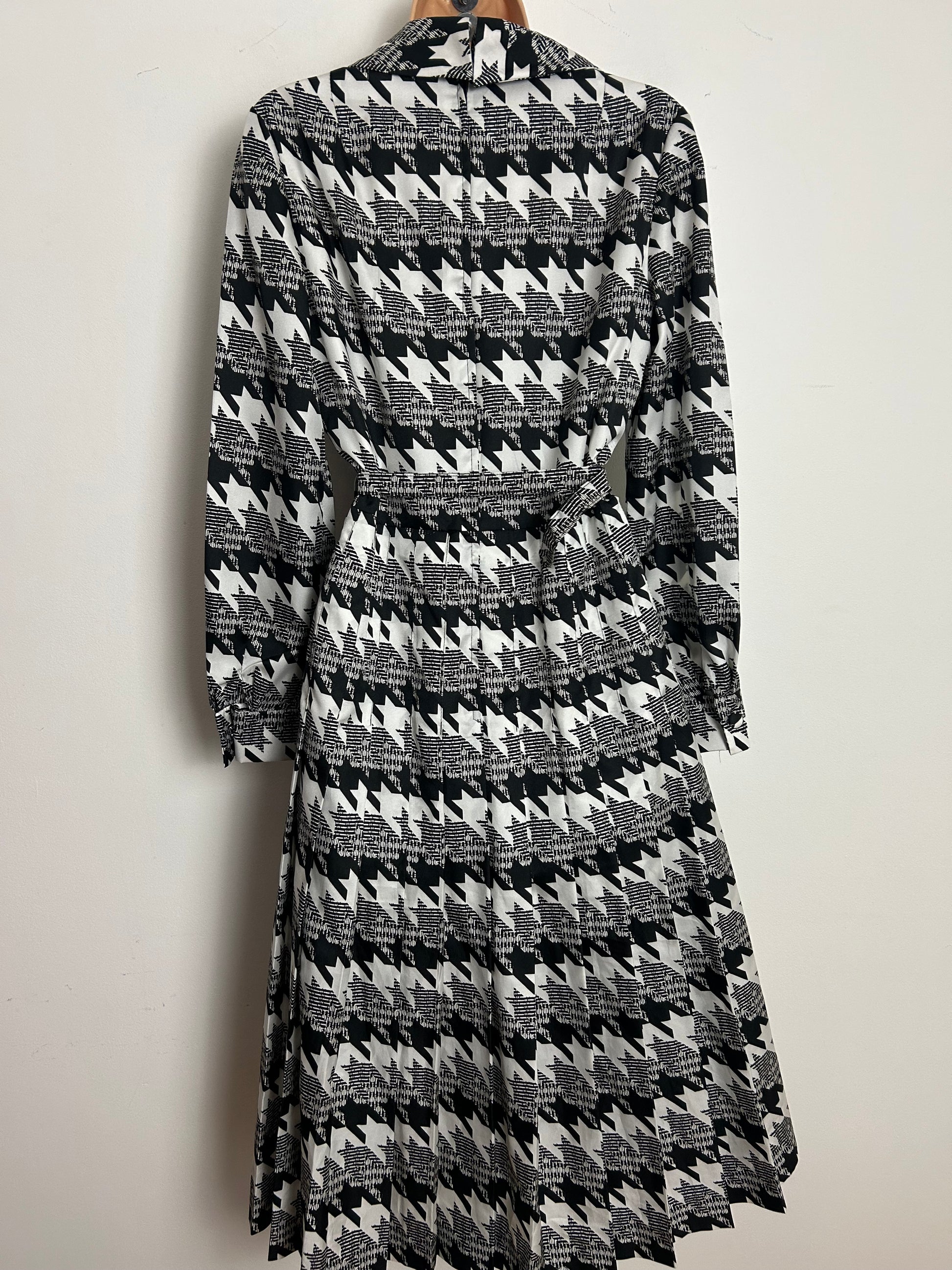 This lovely vintage dress is made from a silky feel 100% polyester in black & white dogtooth check.