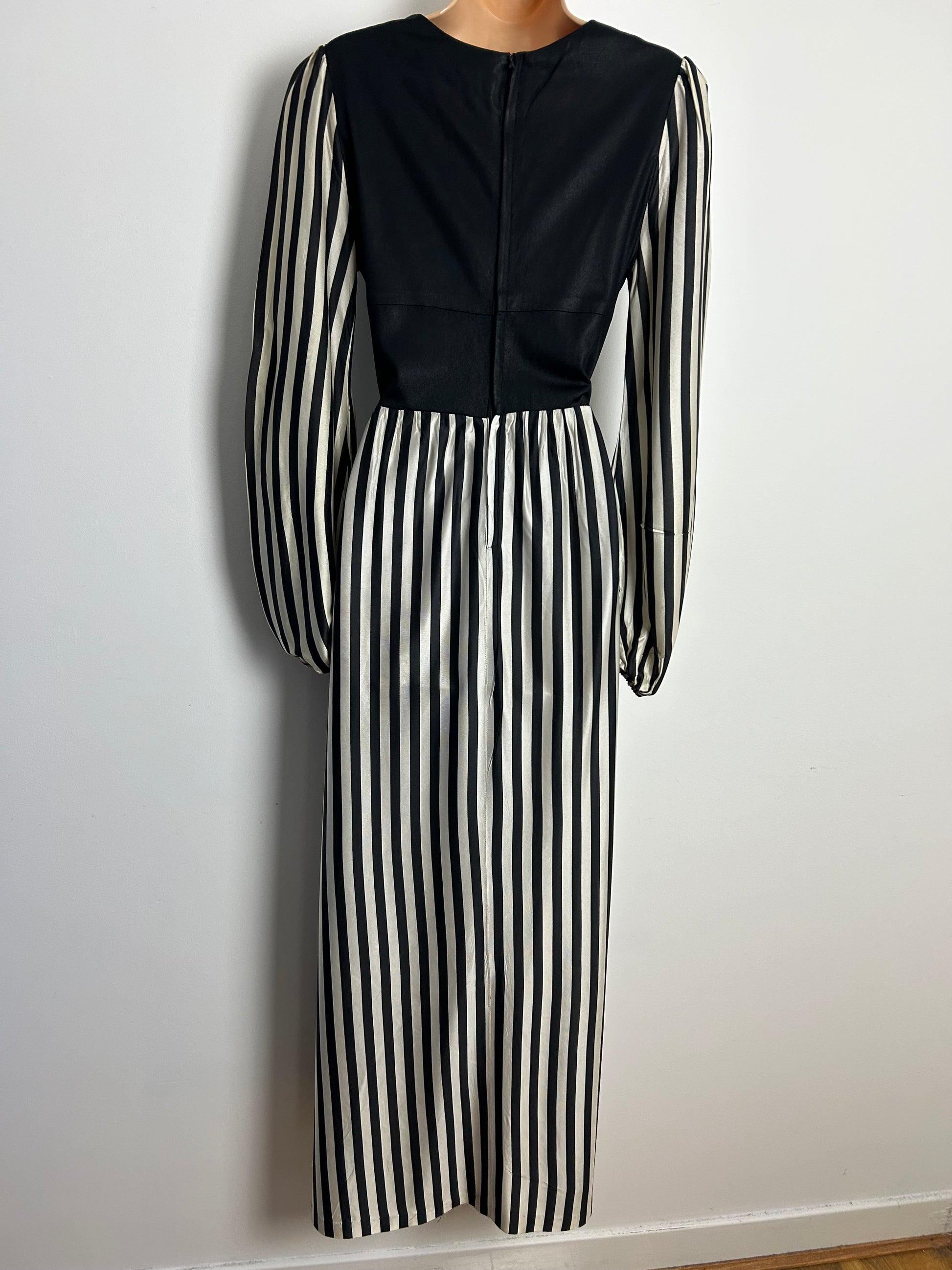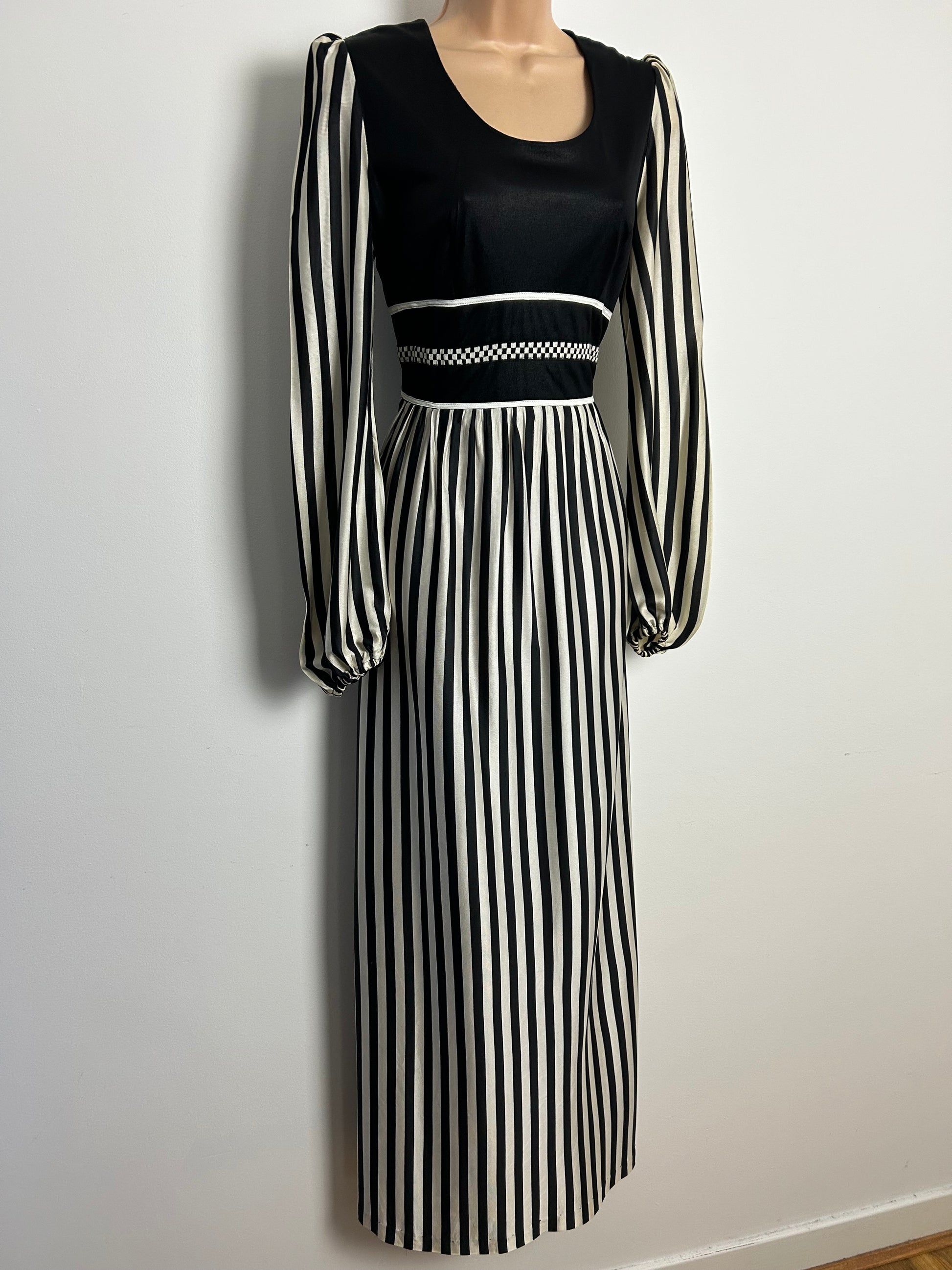 Vintage 1970s DEVONSHIRE LADY Size 10 Black & White Vertical Stripe Long Sleeve Maxi Dress