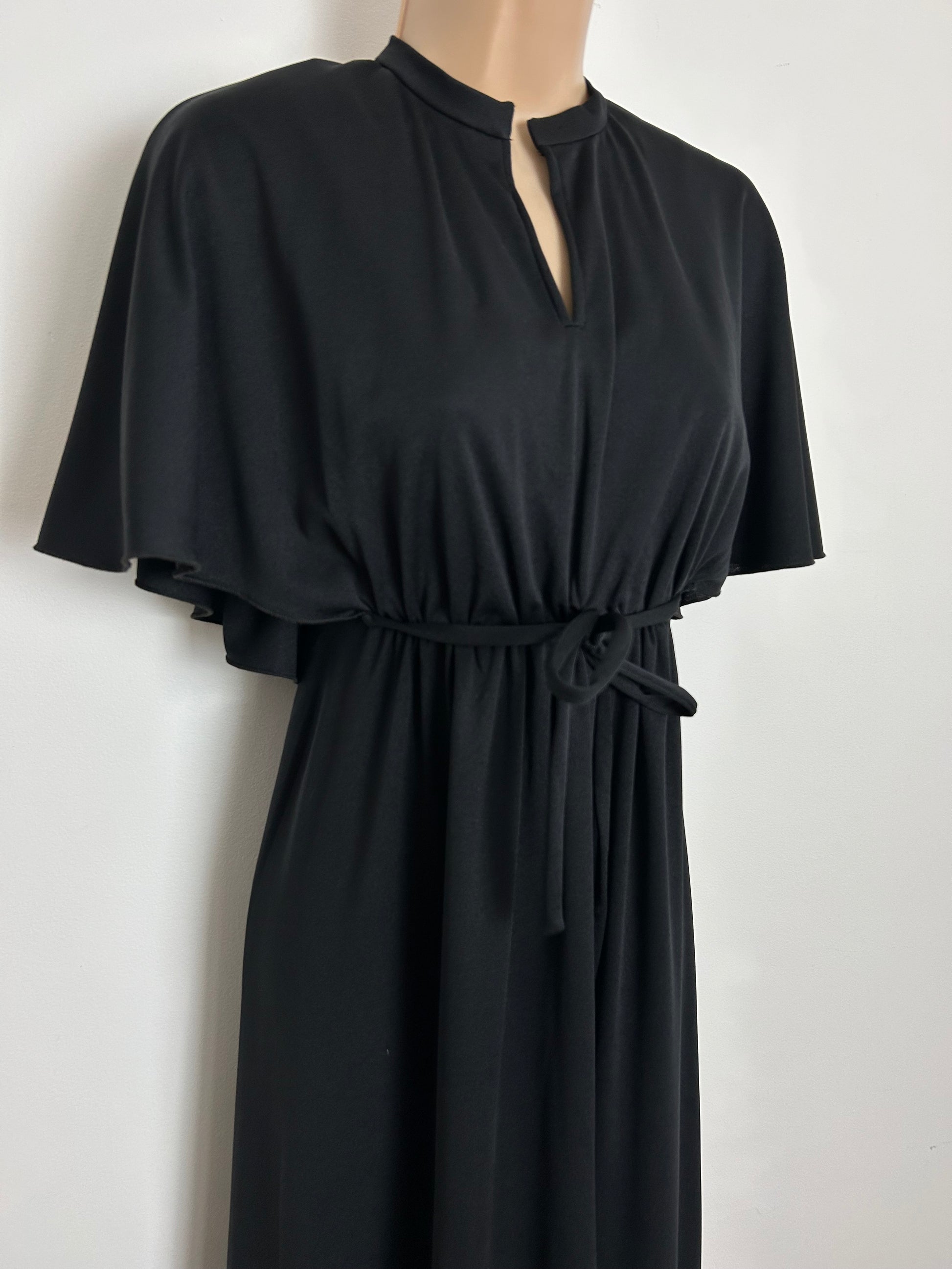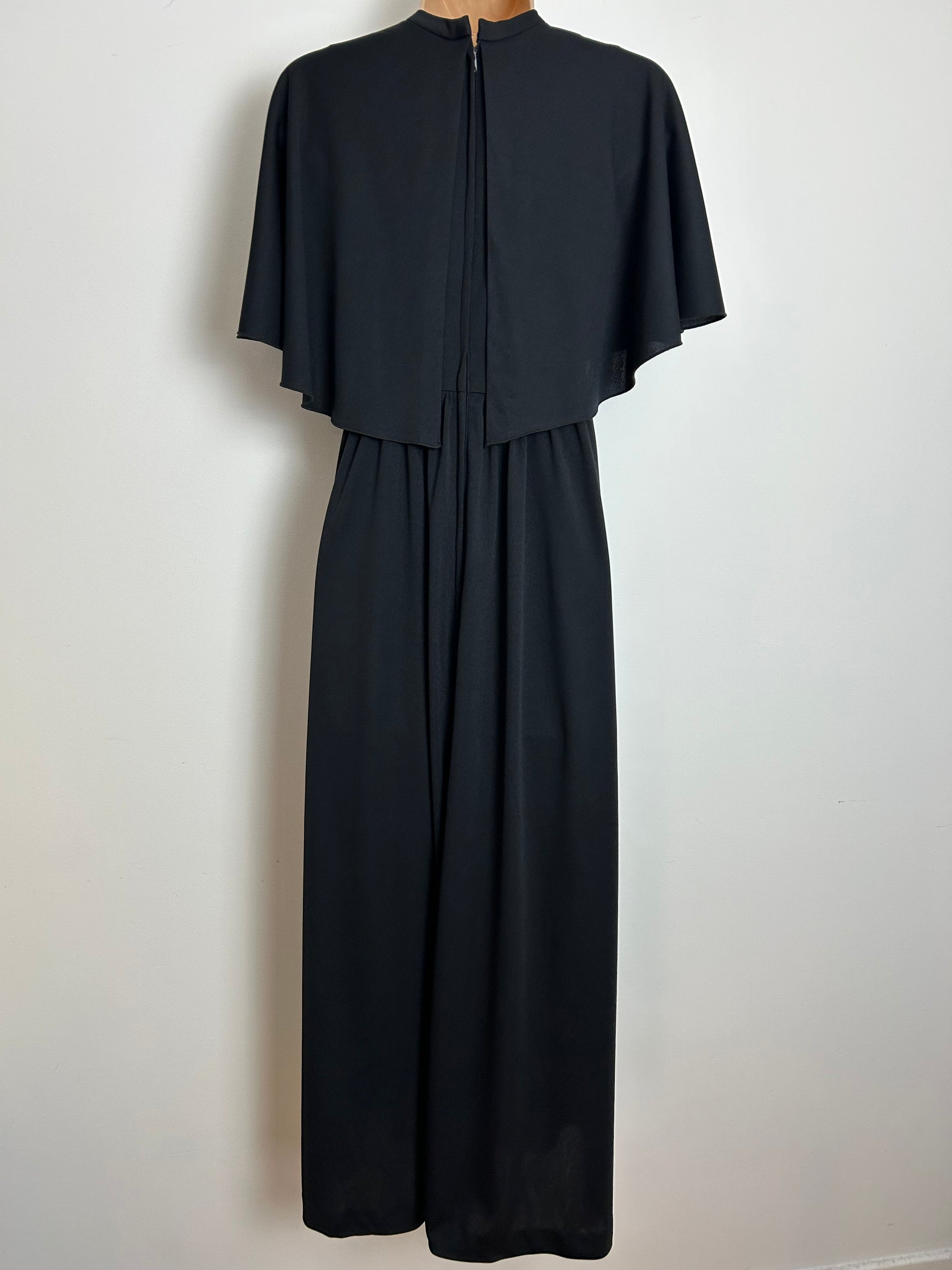 Vintage 1970s KATI AT LAURA PHILLIPS Size 10 Black Flutter Cape Sleeve Empire Line Maxi Dress