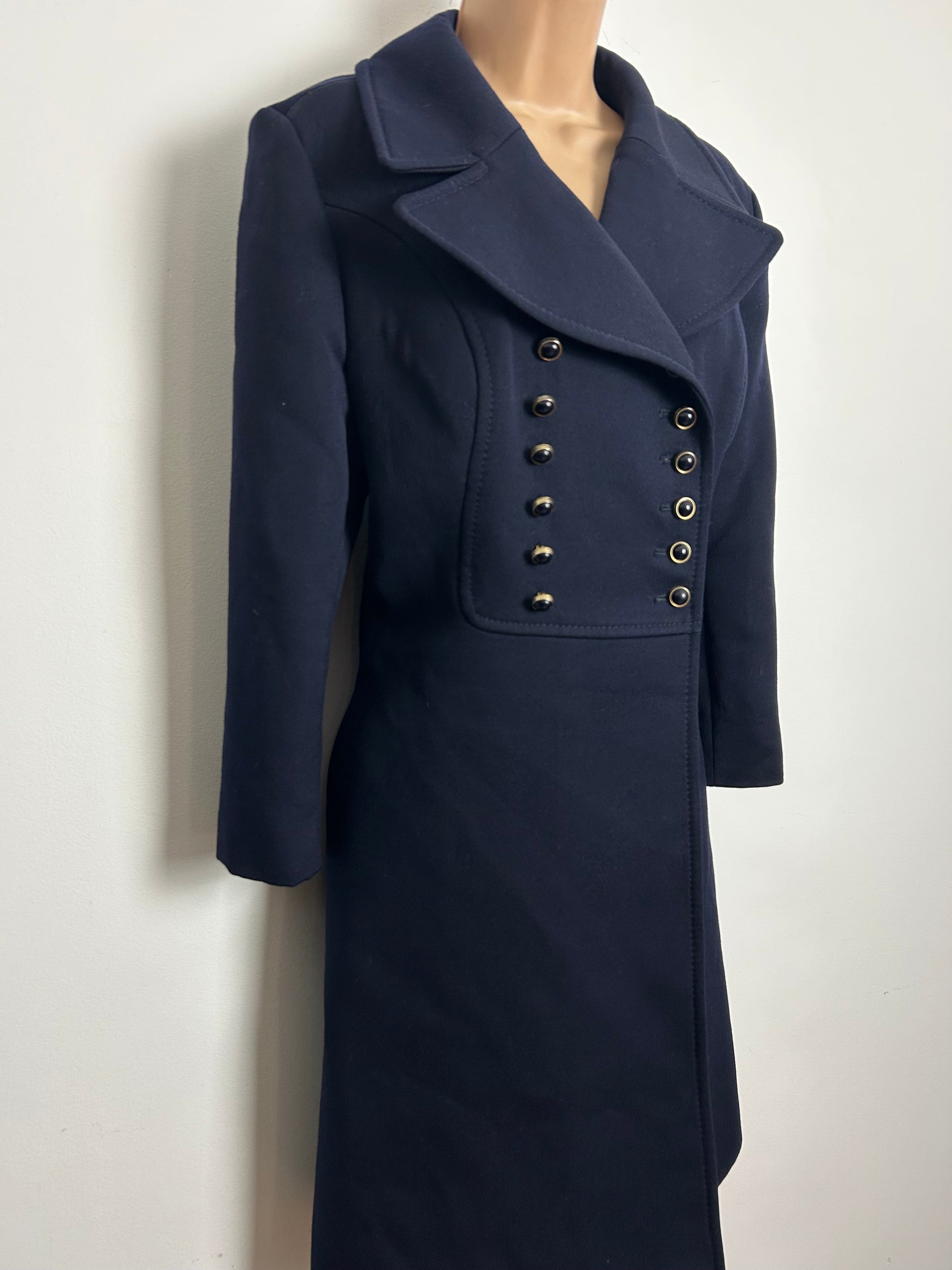 This lovely vintage military style pea coat is made from a navy blue pure new wool.