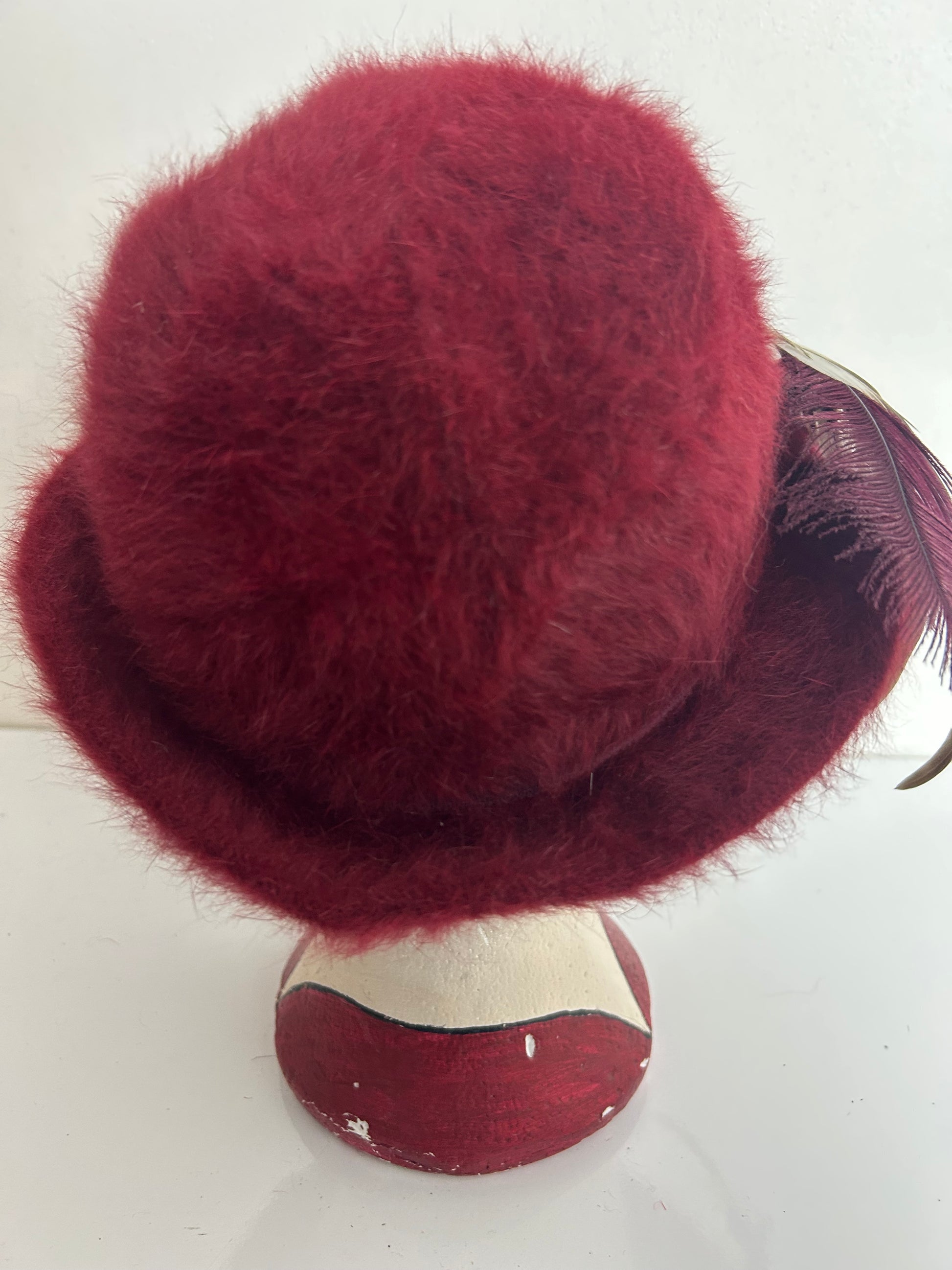 Vintage 1970s Maroon Angora Mix Feather Trim Traditional Austrian Hat