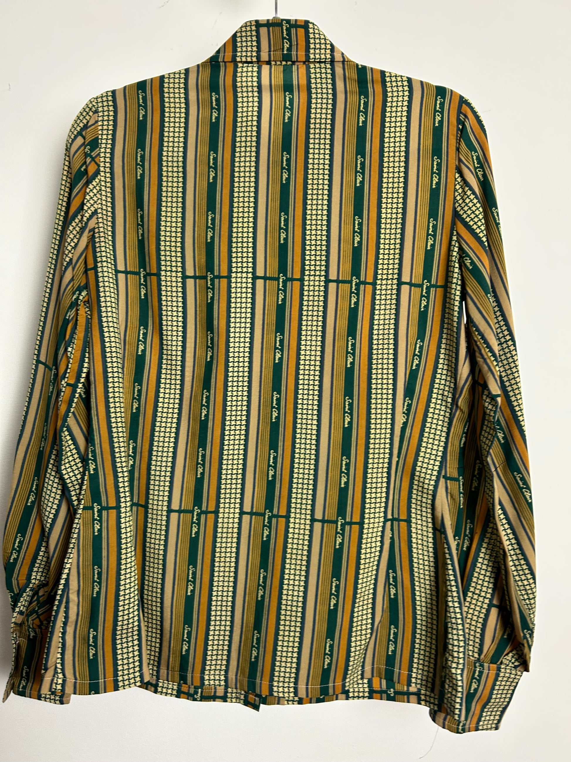 Vintage 1970s SAINT-CLAIR PARIS Size 8 Green Rust Tones Stripe Print Long Sleeve Shirt