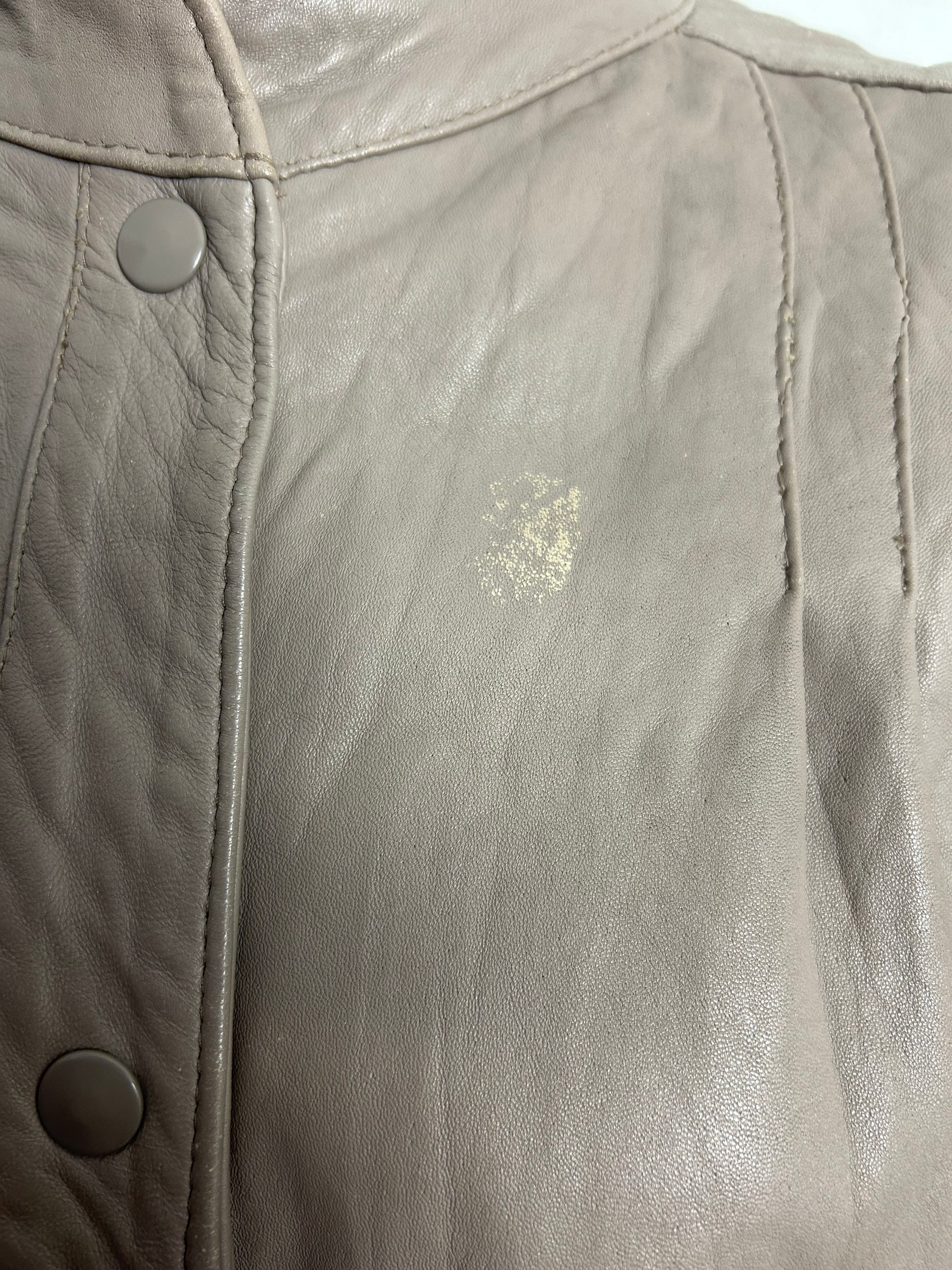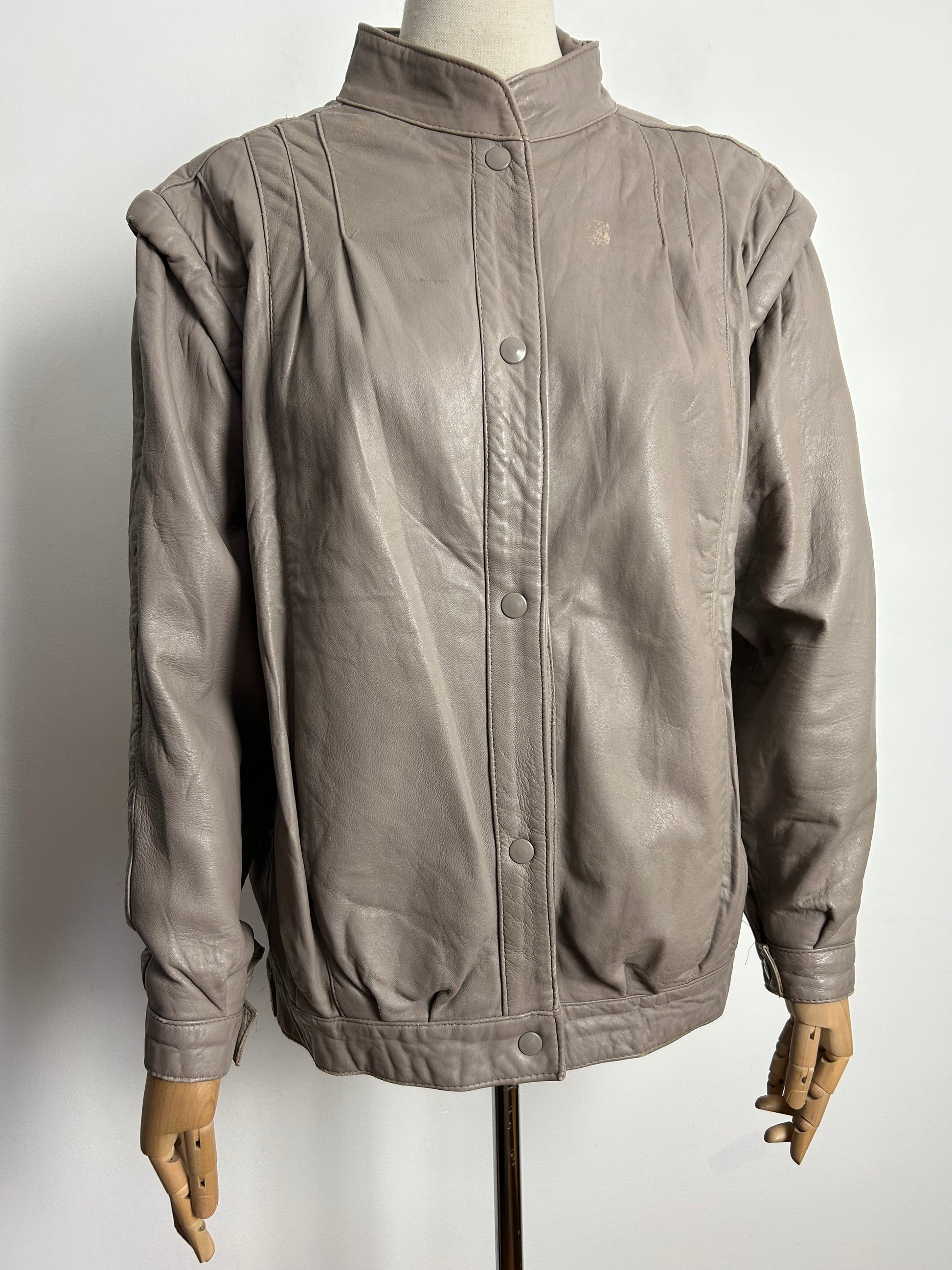 This fab vintage 80s leather jacket is a soft taupe leather.