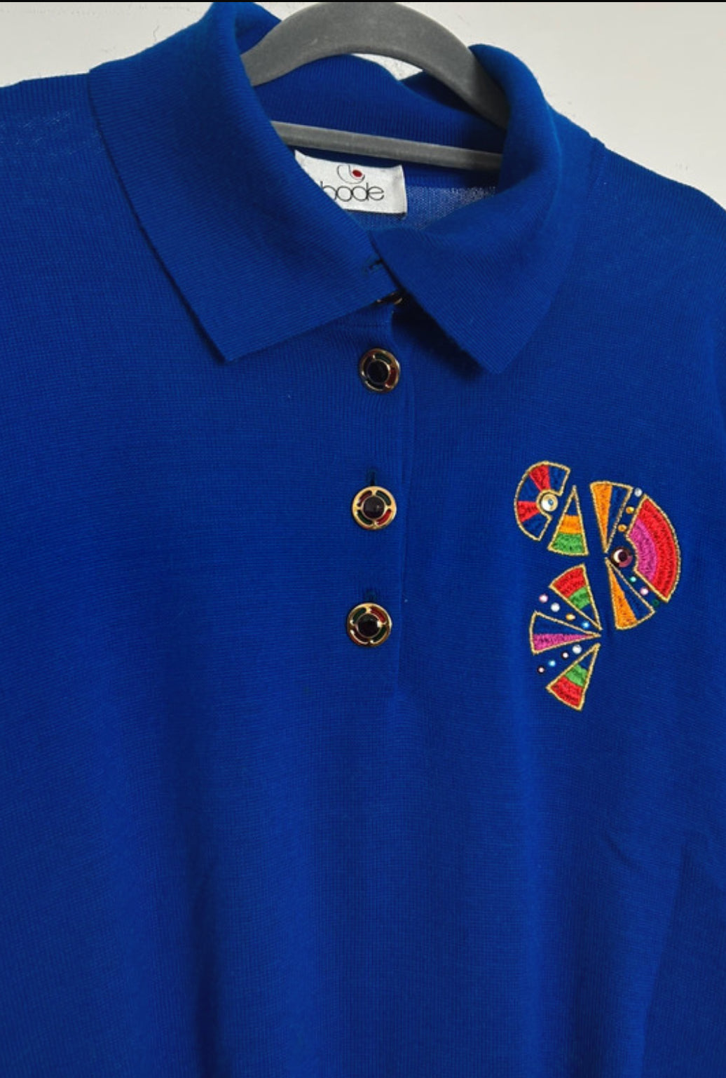 Vintage 1980s BODE Size 14 Electric Blue Wool Mix Collared Lightweight Jumper