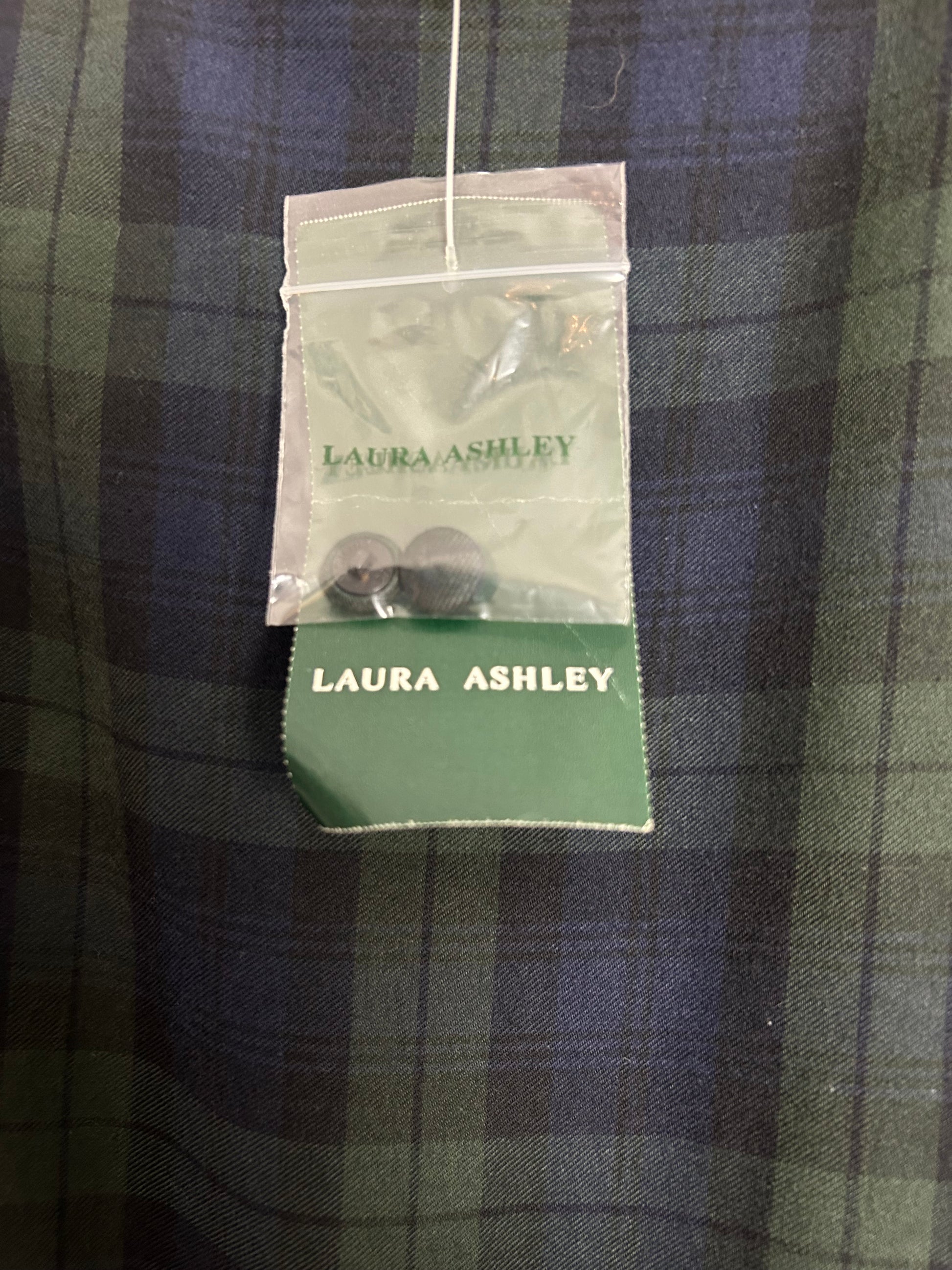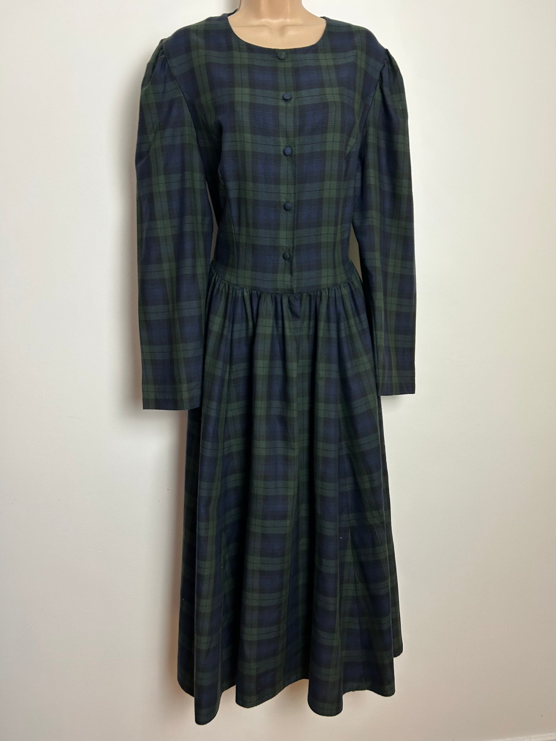 Vintage 1980s LAURA ASHLEY DEADSTOCK Size 14-16 (Size 18 On Label) Dark Blue Green & Navy Blackwatch Tartan Check Midaxi Cotton Dress