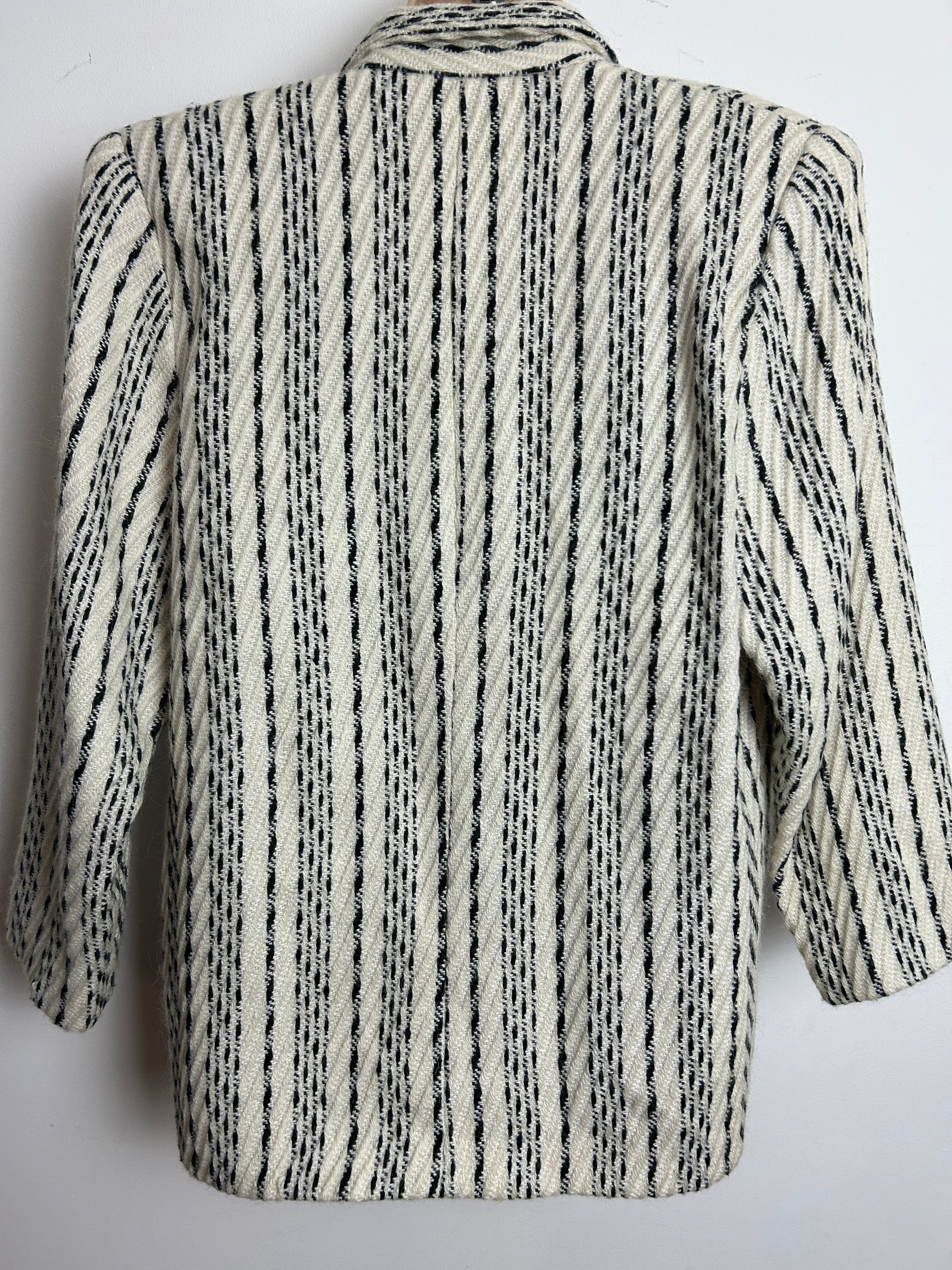 Vintage 1980s MIRAGE Size 16 Cream & Black Stripe Wool Mix Fully Lined Blazer/Jacket