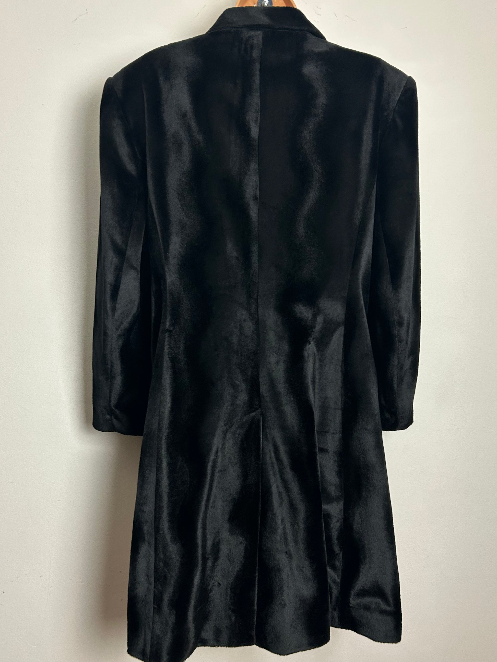 This is a gorgeous black velvet long length blazer style jacket.