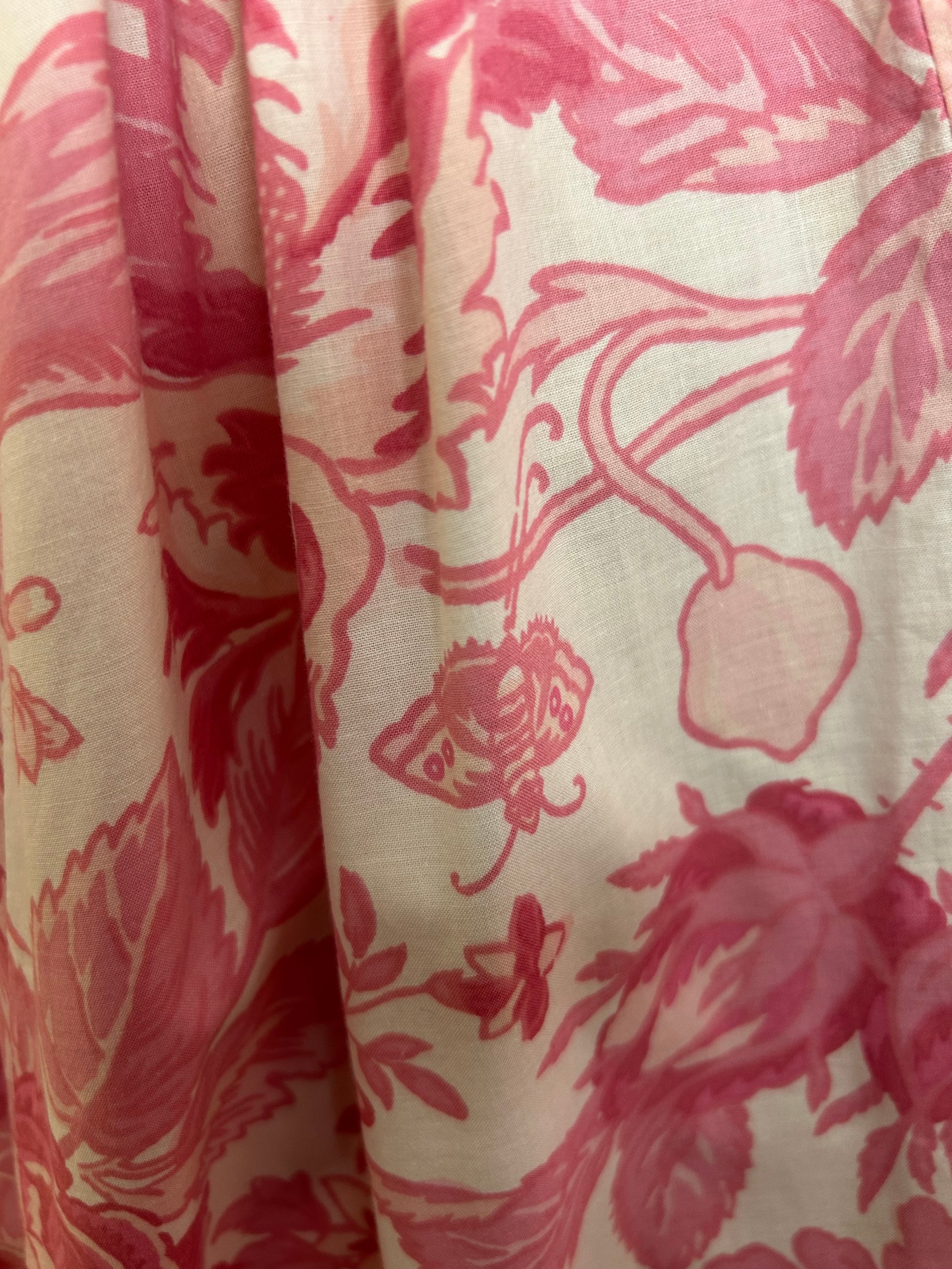 This pretty vintage midi dress is made from 100% cotton in pink & white floral bird & butterfly print.