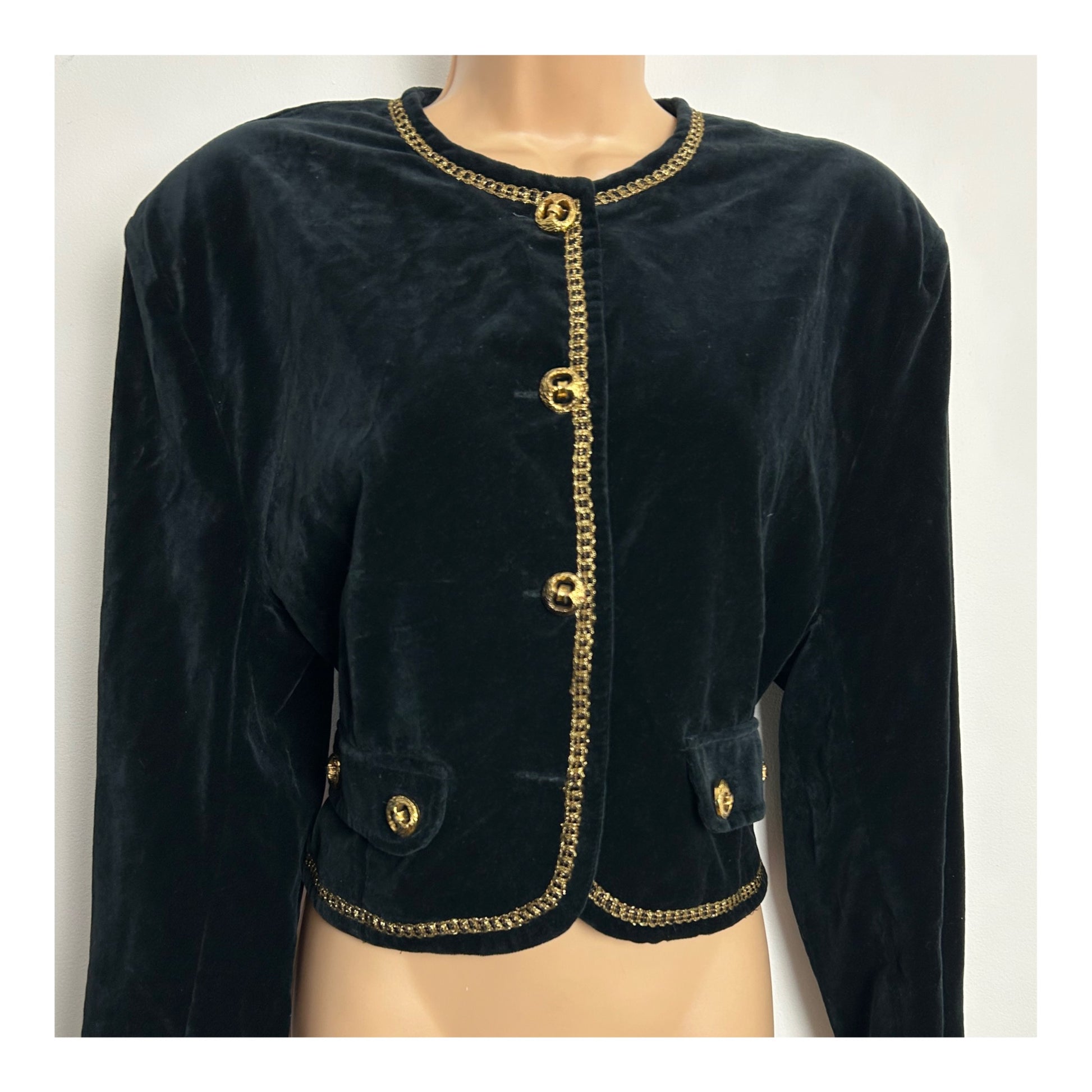 Vintage 1980s Size 14-16 Black & Gold Braid Trim Velvet Evening Jacket