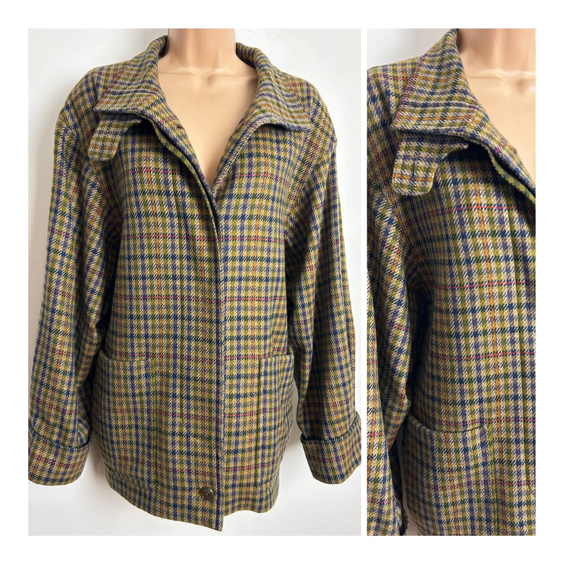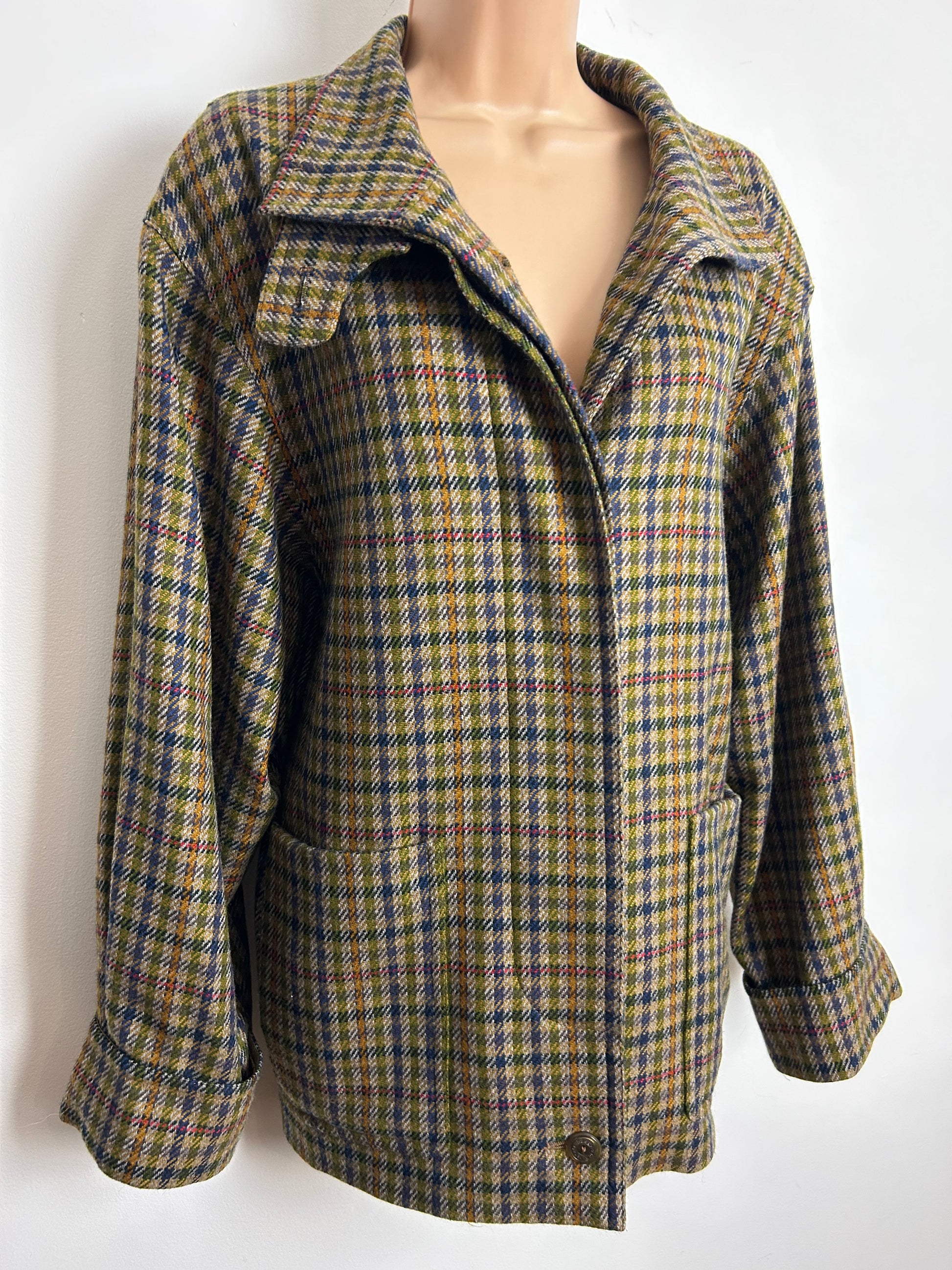 Vintage 1980s Size 14-16 Brown Dogtooth Check Wool Mix Fully Lined Jacket