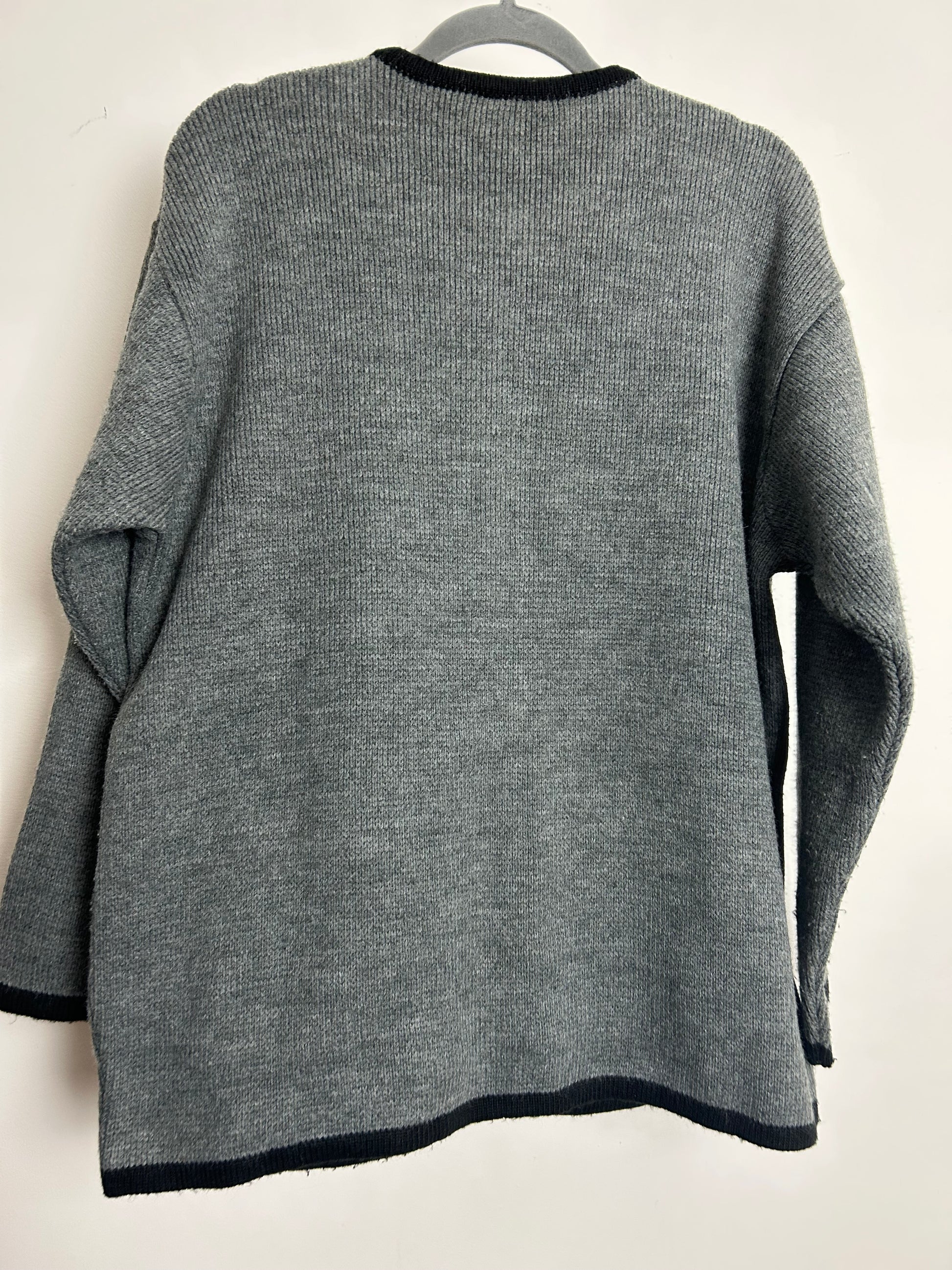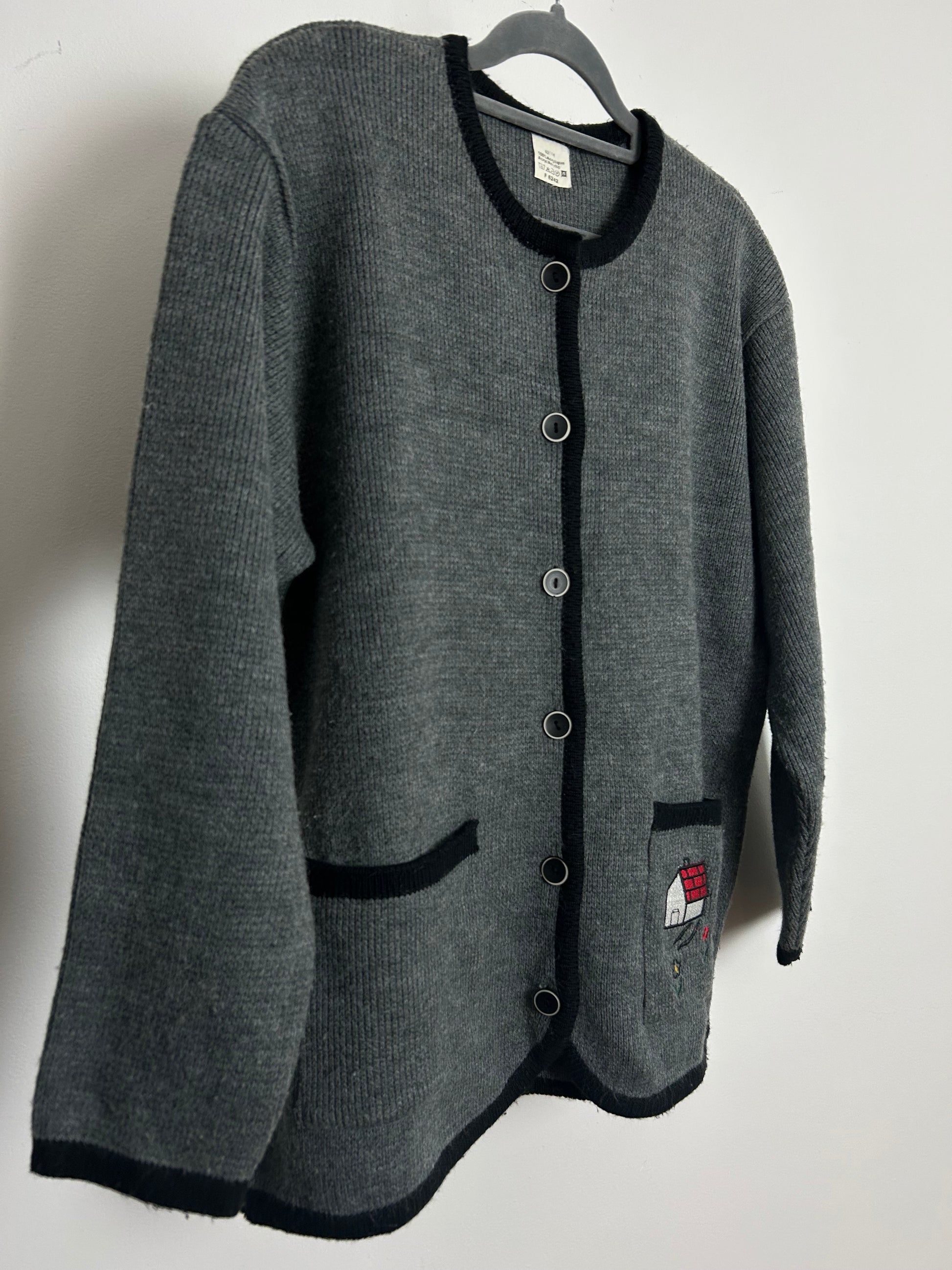 Vintage 1980s Up To Size 14 Grey Embroidered Cottage Pocket Detail Cardigan