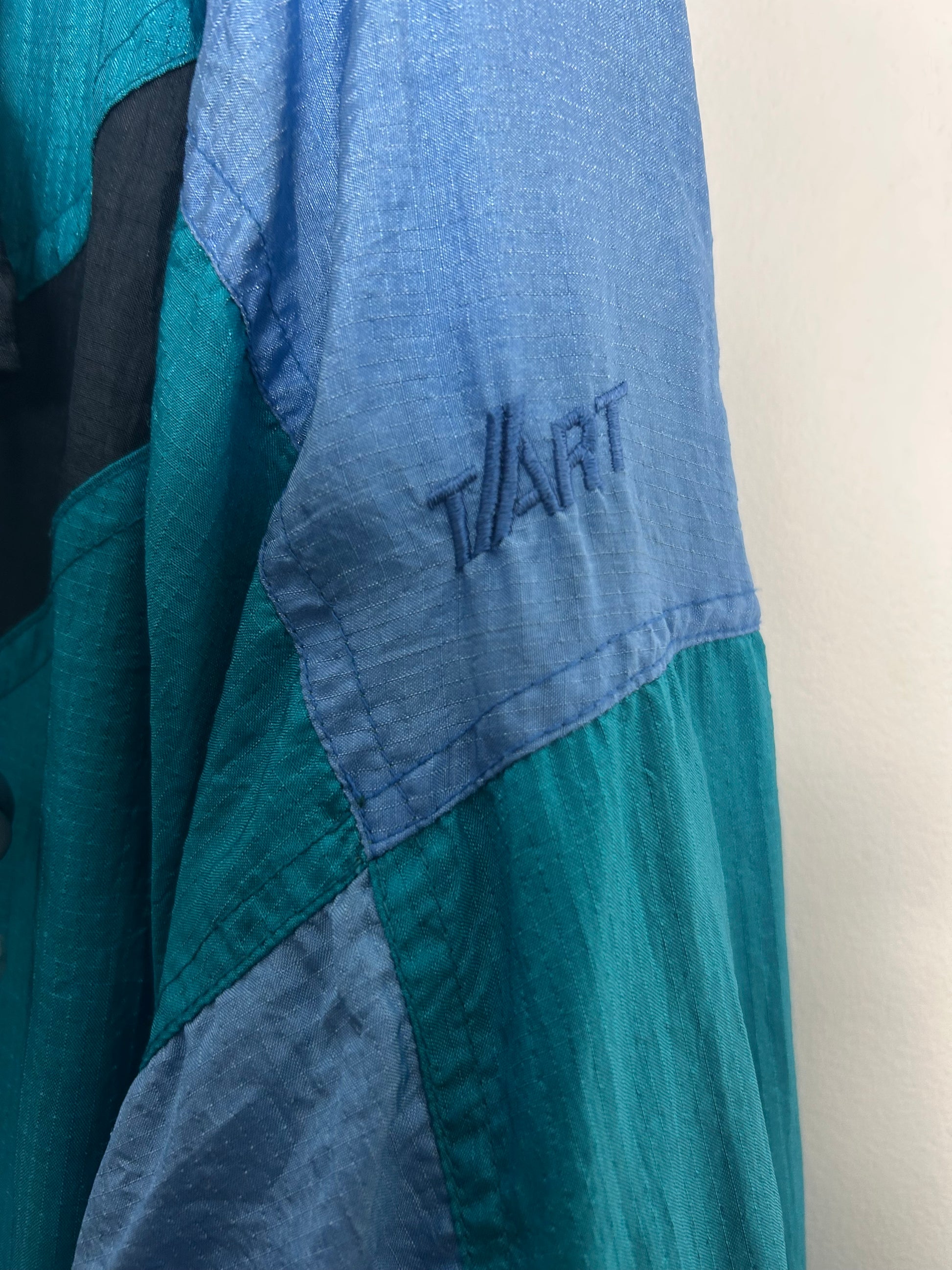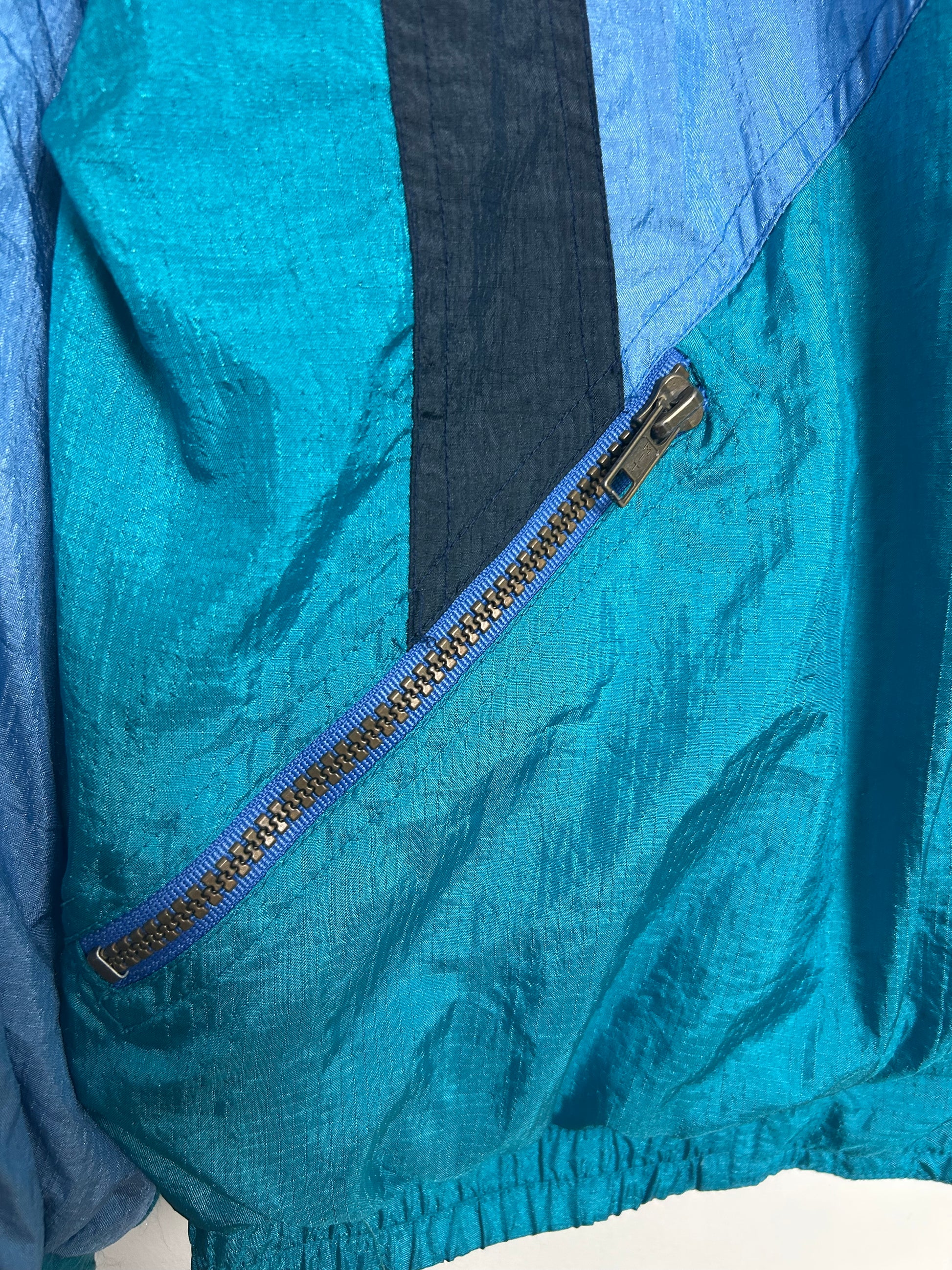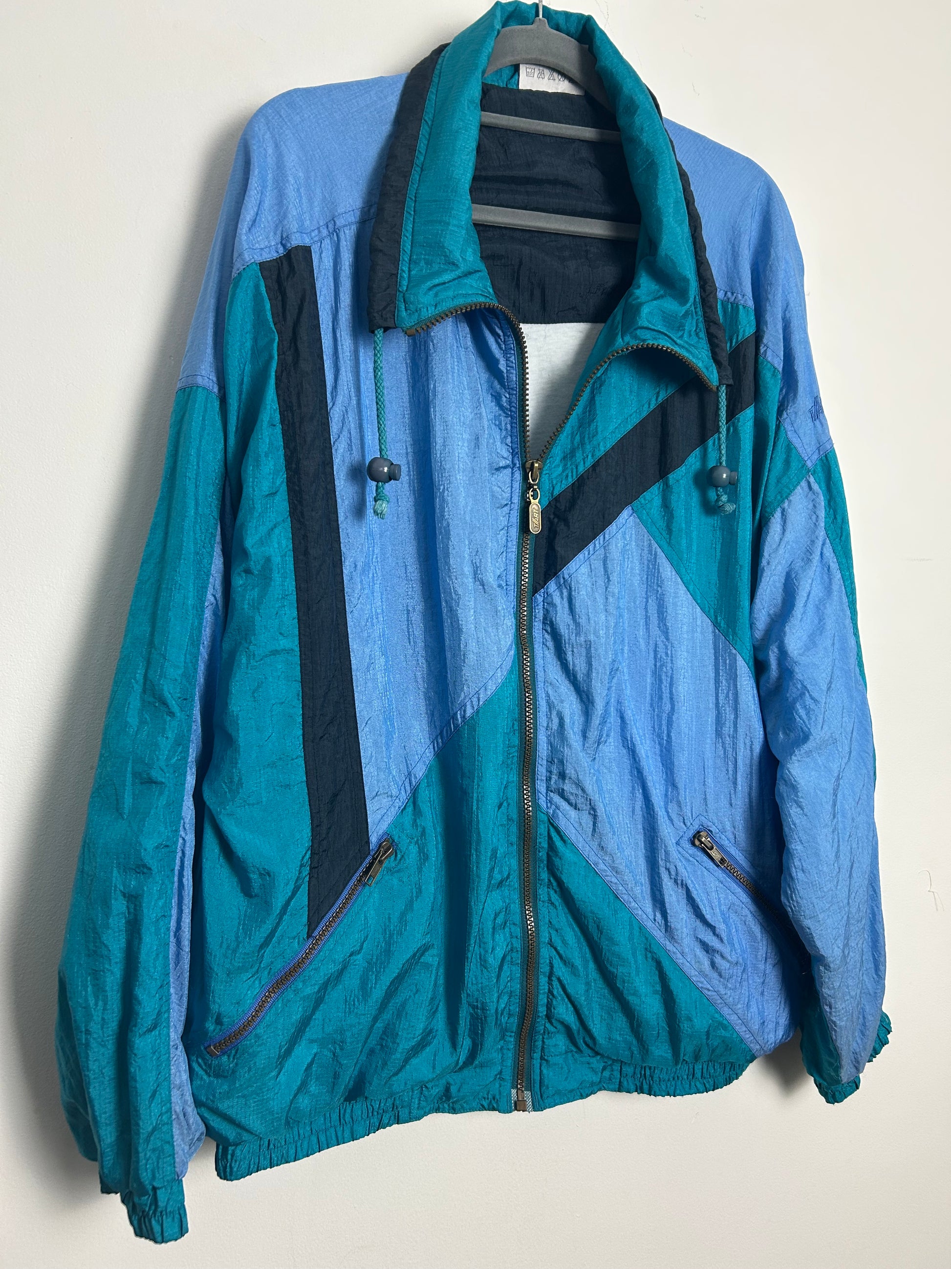 Vintage 1980s T/ART Up To Size 16 Blue Tones Zip Pockets Shell Suit Jacket