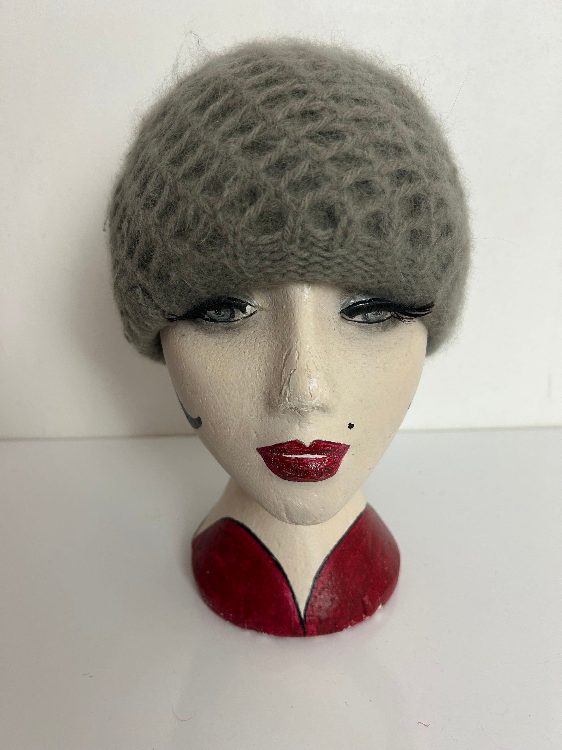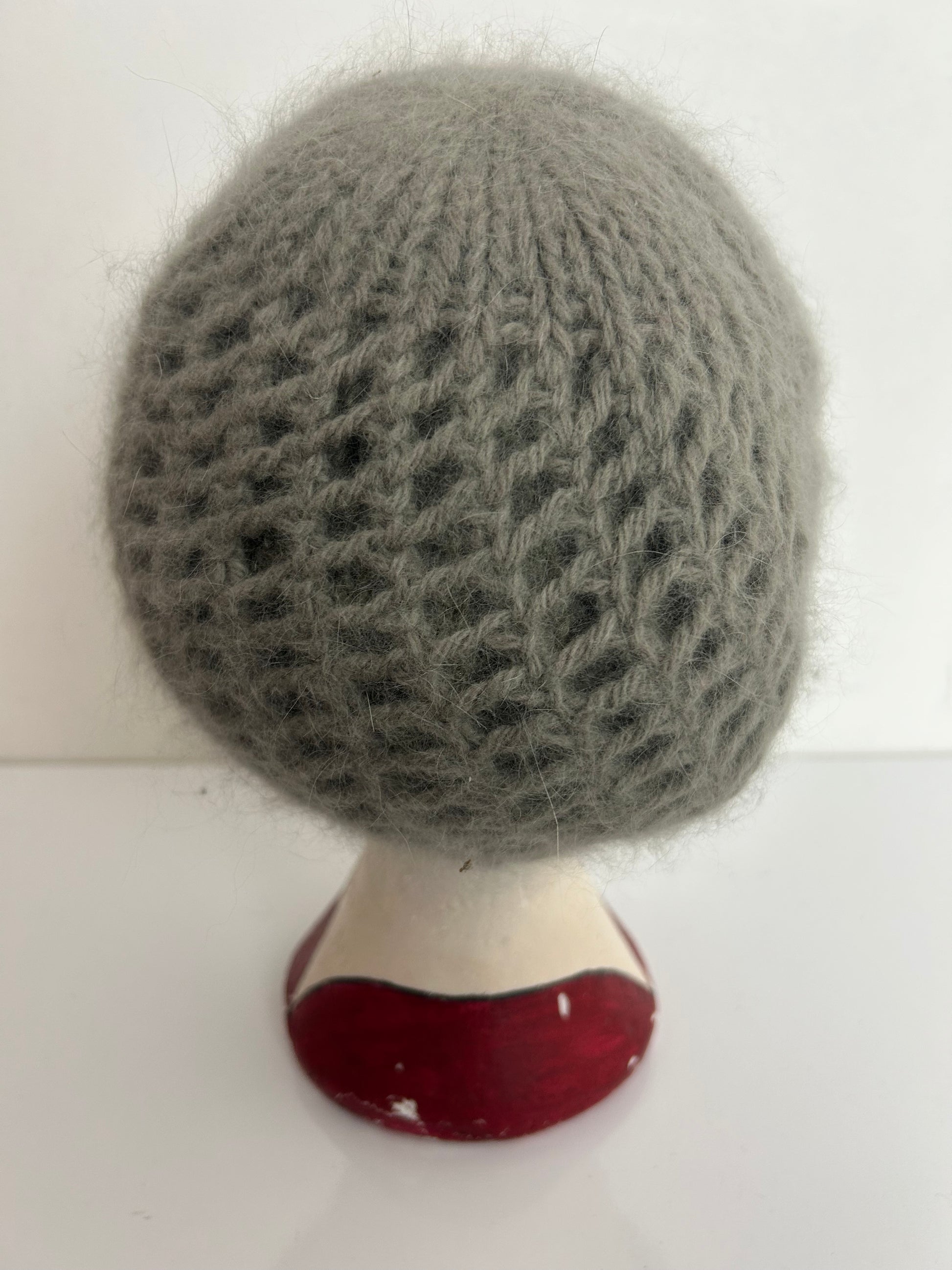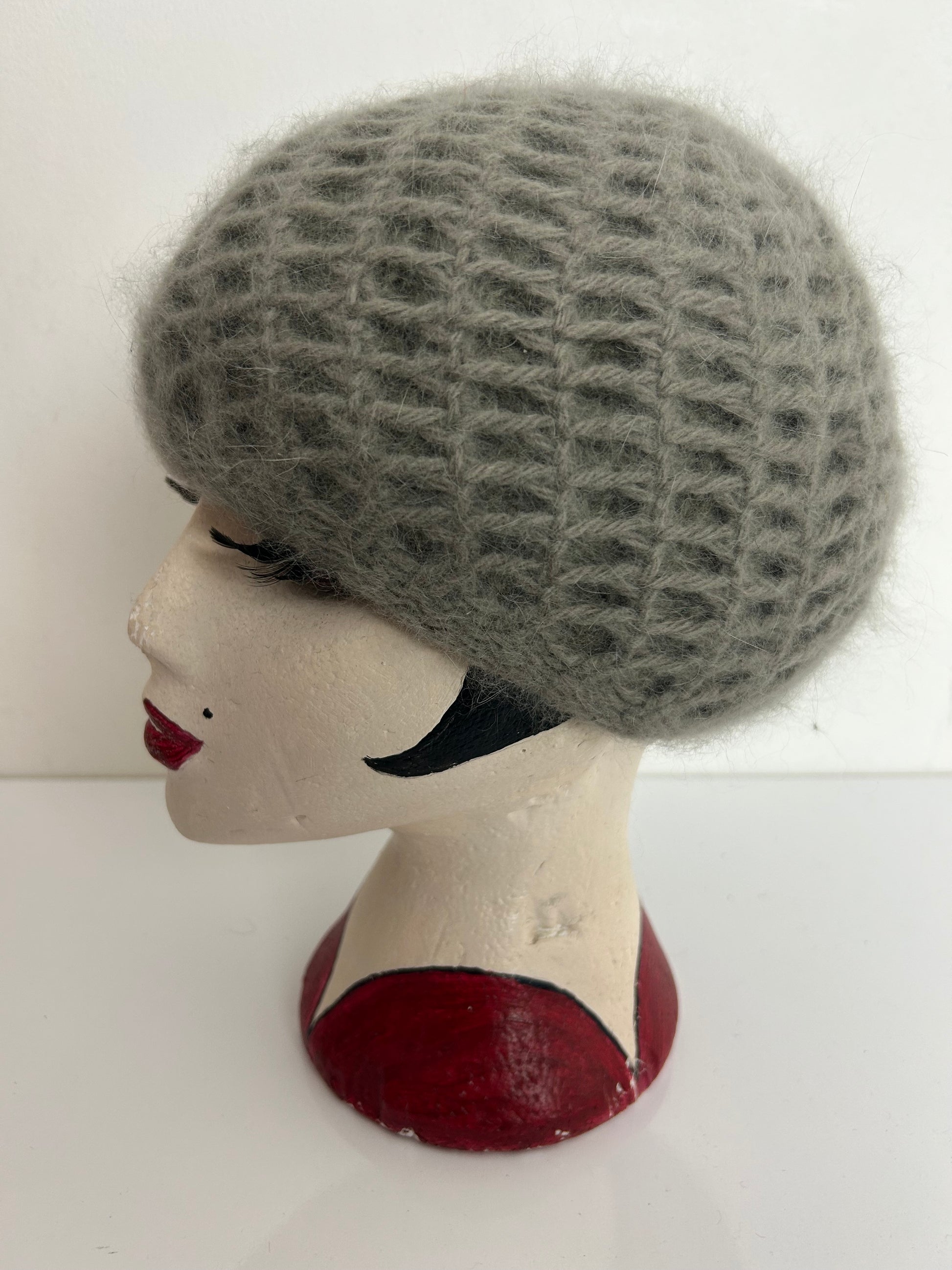 Vintage 1970s Grey Chunky Knit Super Soft Angora & Wool Beanie Winter Hat