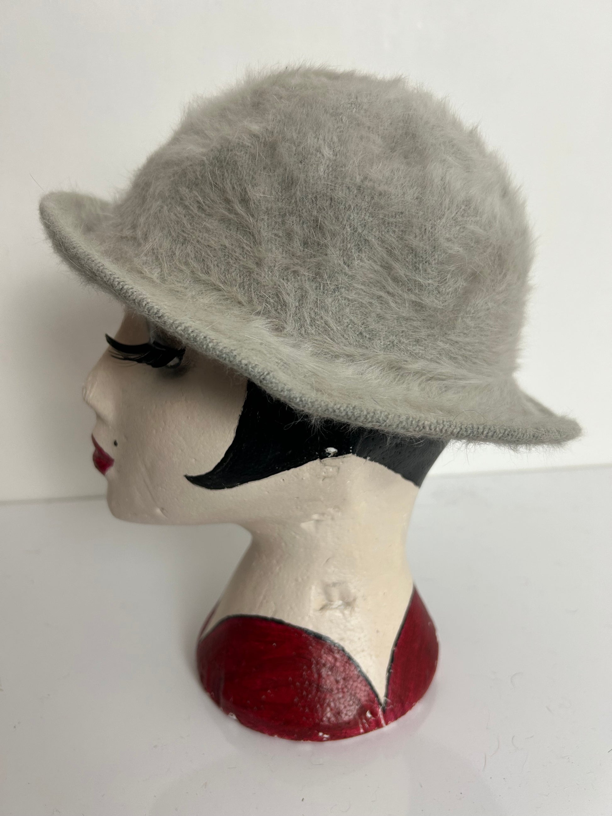 This lovely vintage angora mix trilby style hat is a plain beige/ecru shade.