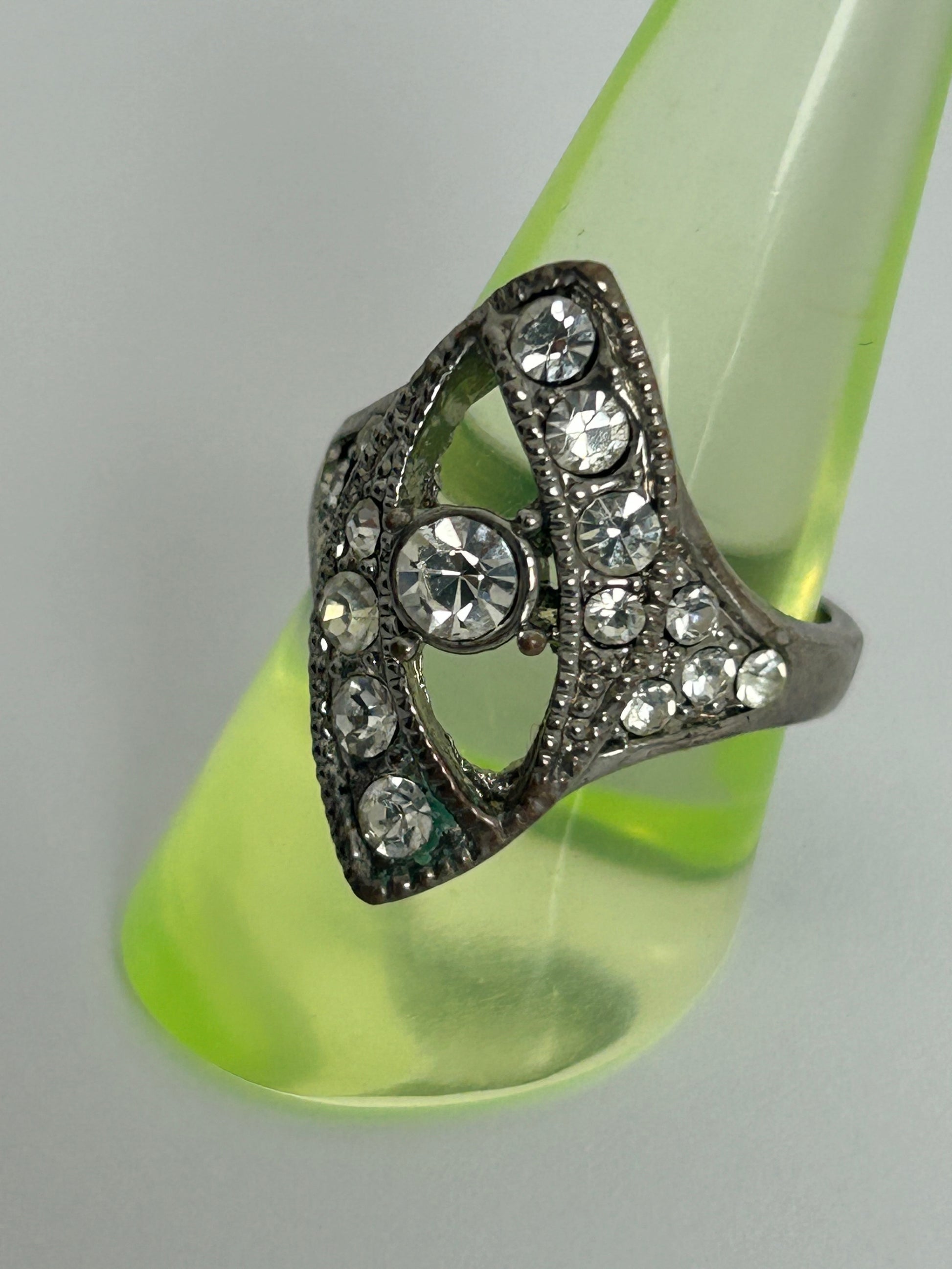 Vintage Beautiful Silver Tone Diamante Set Cocktail Ring Size P