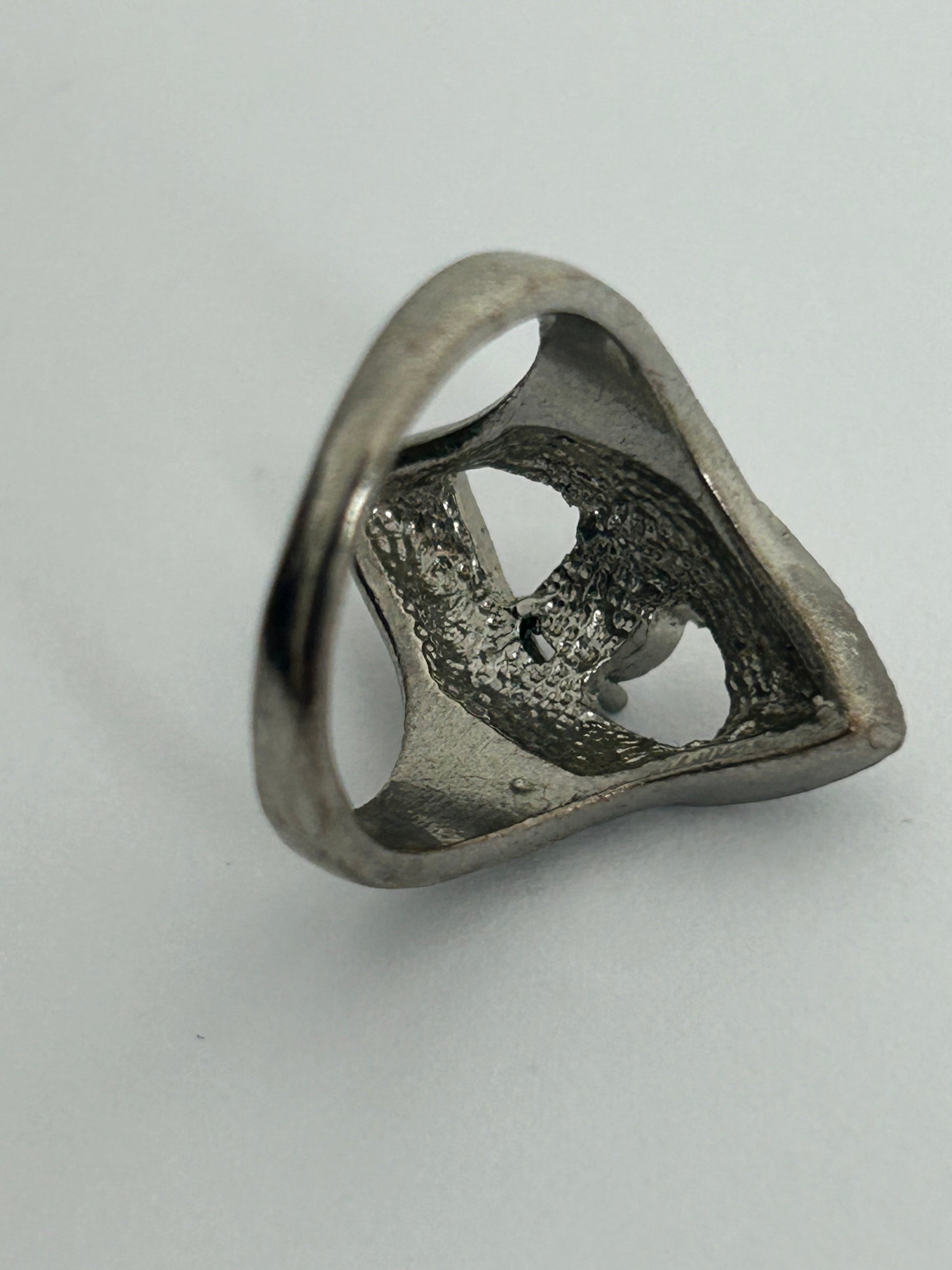 This gorgeous vintage ring is made from a silver tone base metal in a really pretty shape.