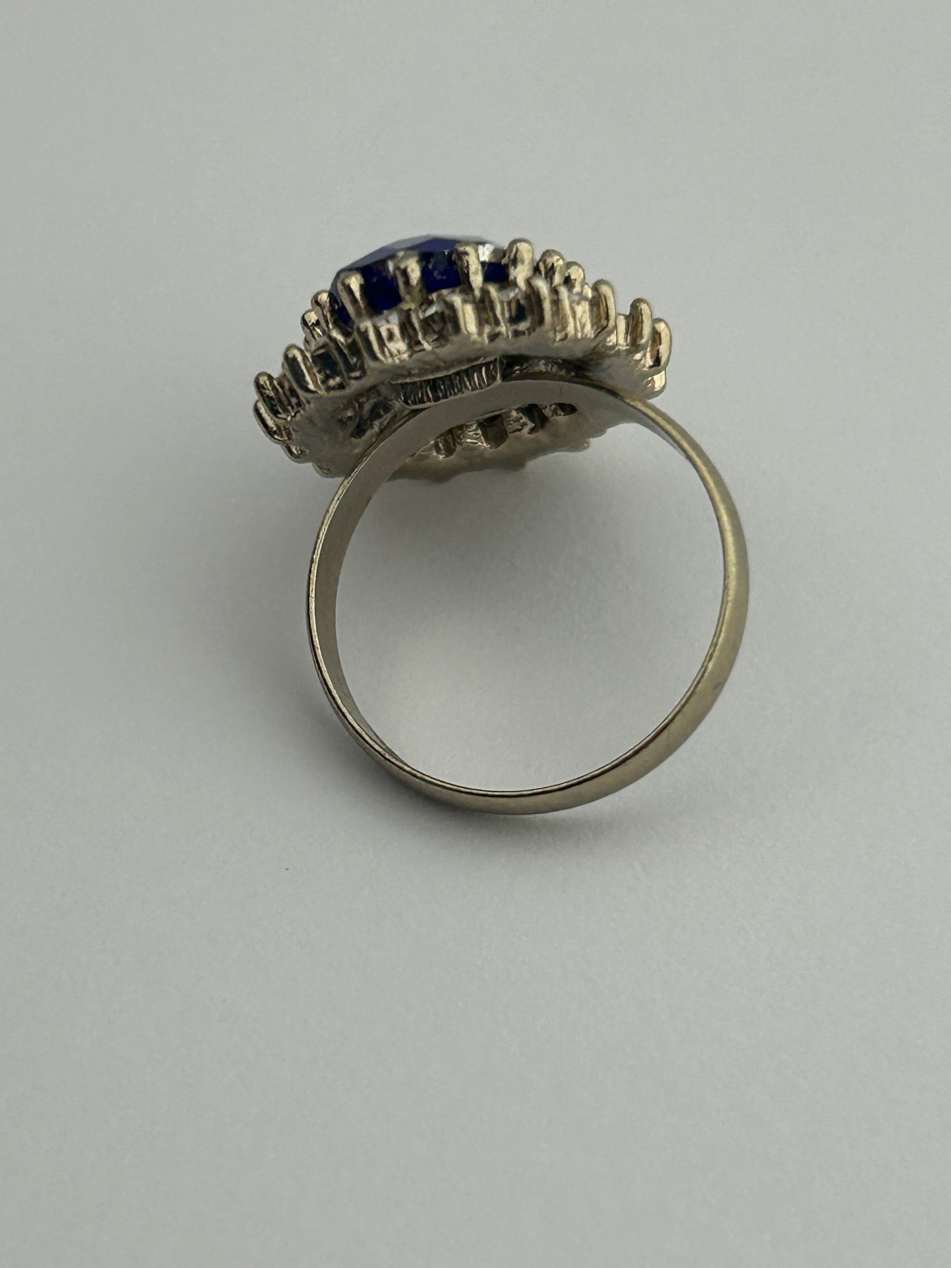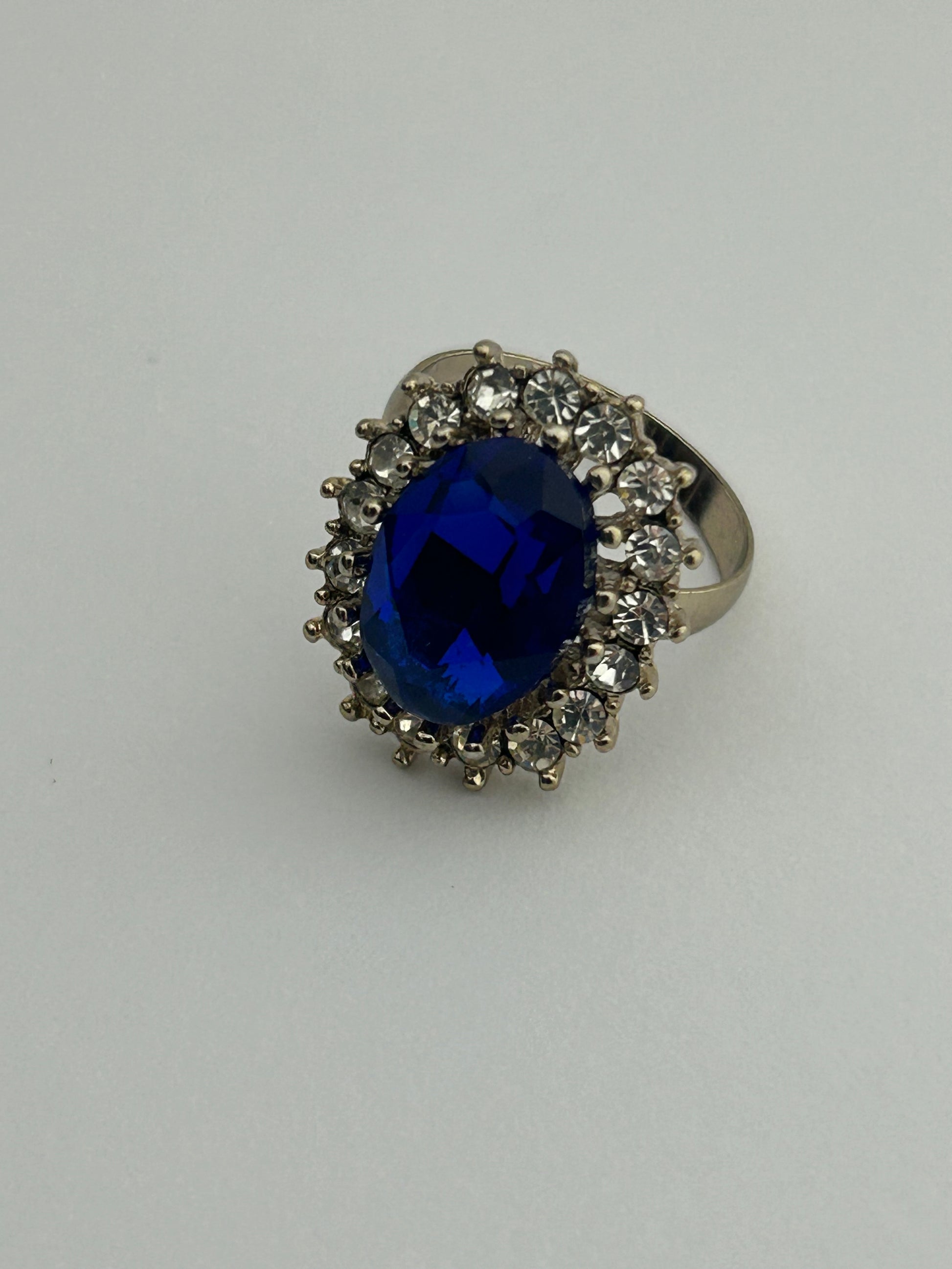 Vintage Blue Glass & Diamante Rhinestone Set Cocktail Ring Size P