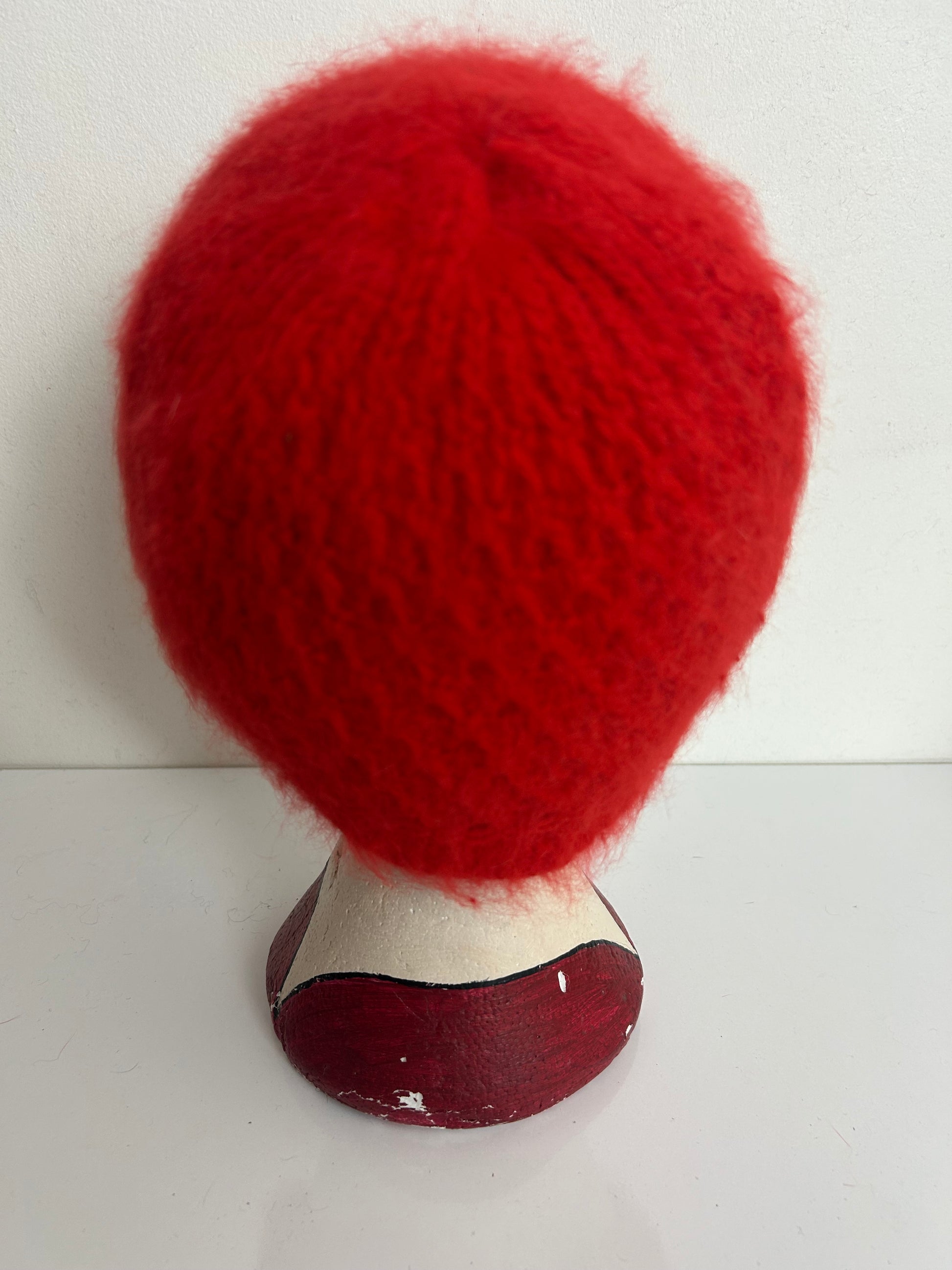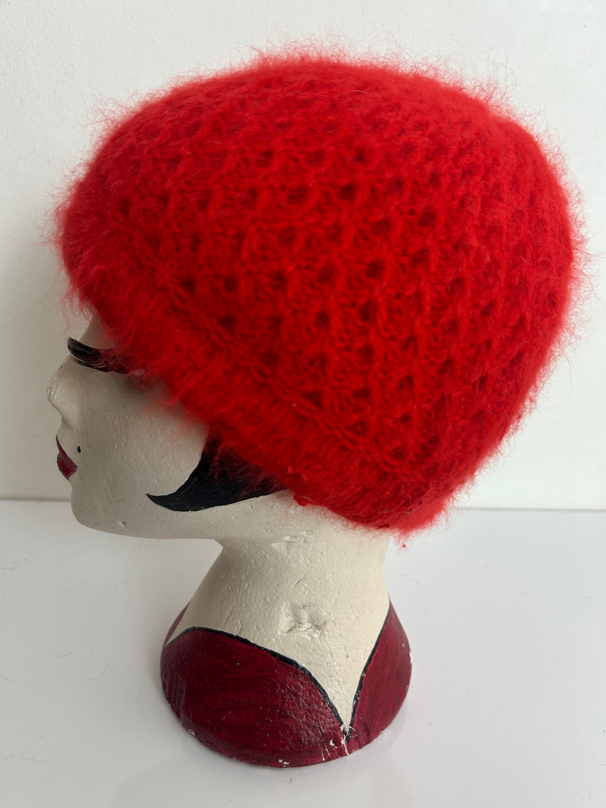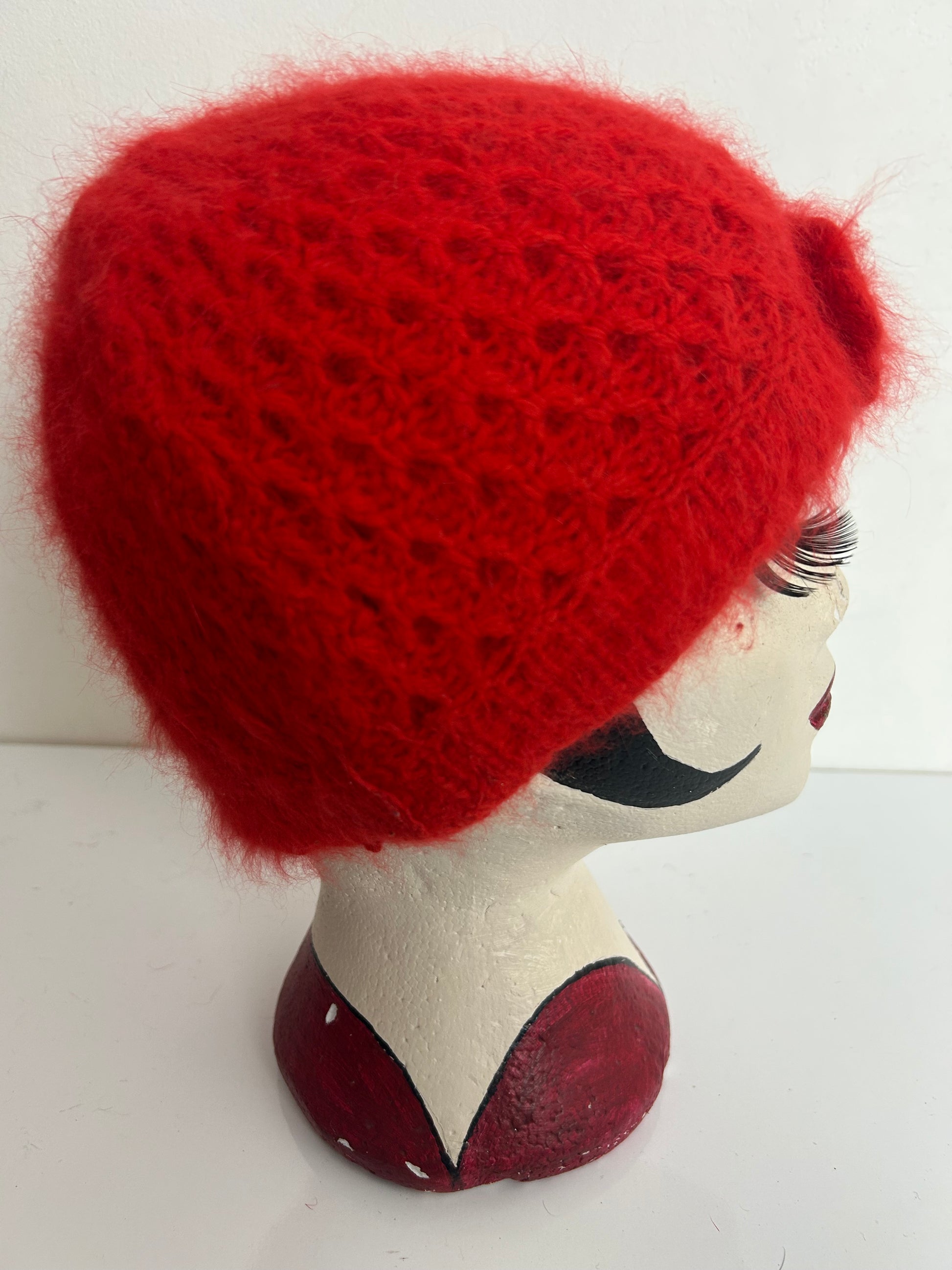 This cute little vintage beanie hat is super soft. With some angora content. In red.