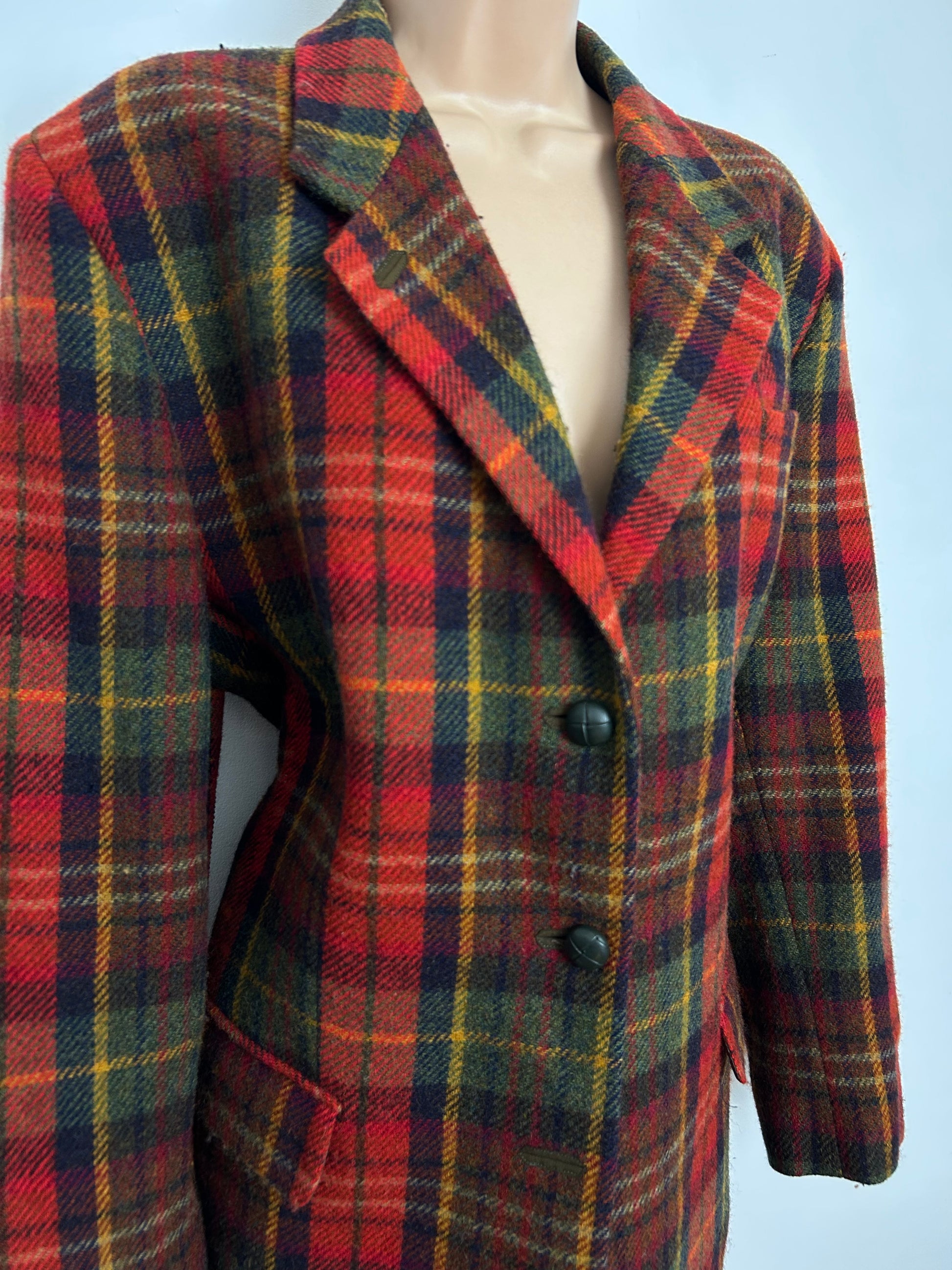 This gorgeous vintage mid weight blazer is made from a red green & yellow tartan check wool.