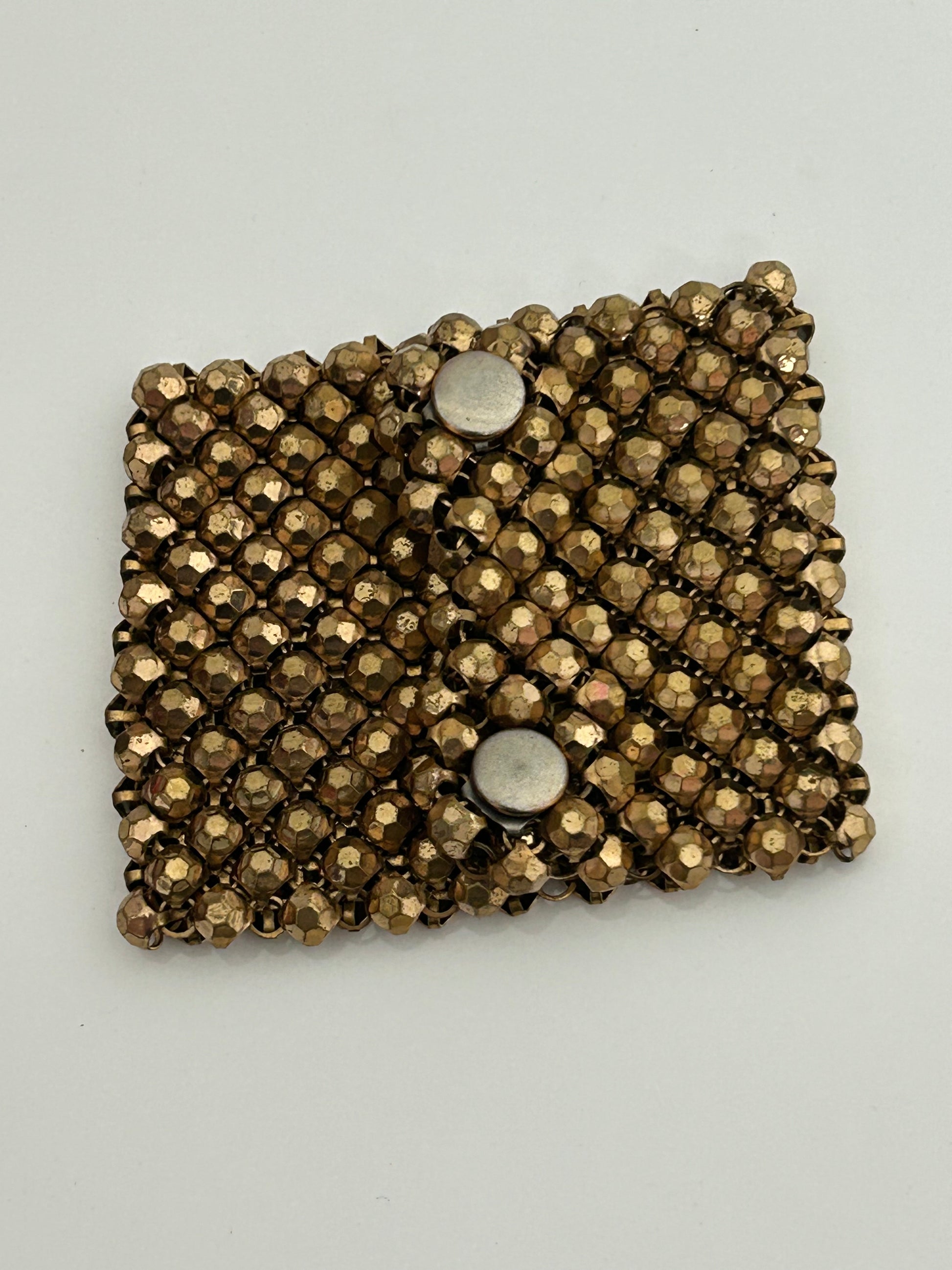 This fab wide vintage mesh style bracelet is made from a mixed metal in dark gold. Multi faceted so it sparkles when the light hits it.