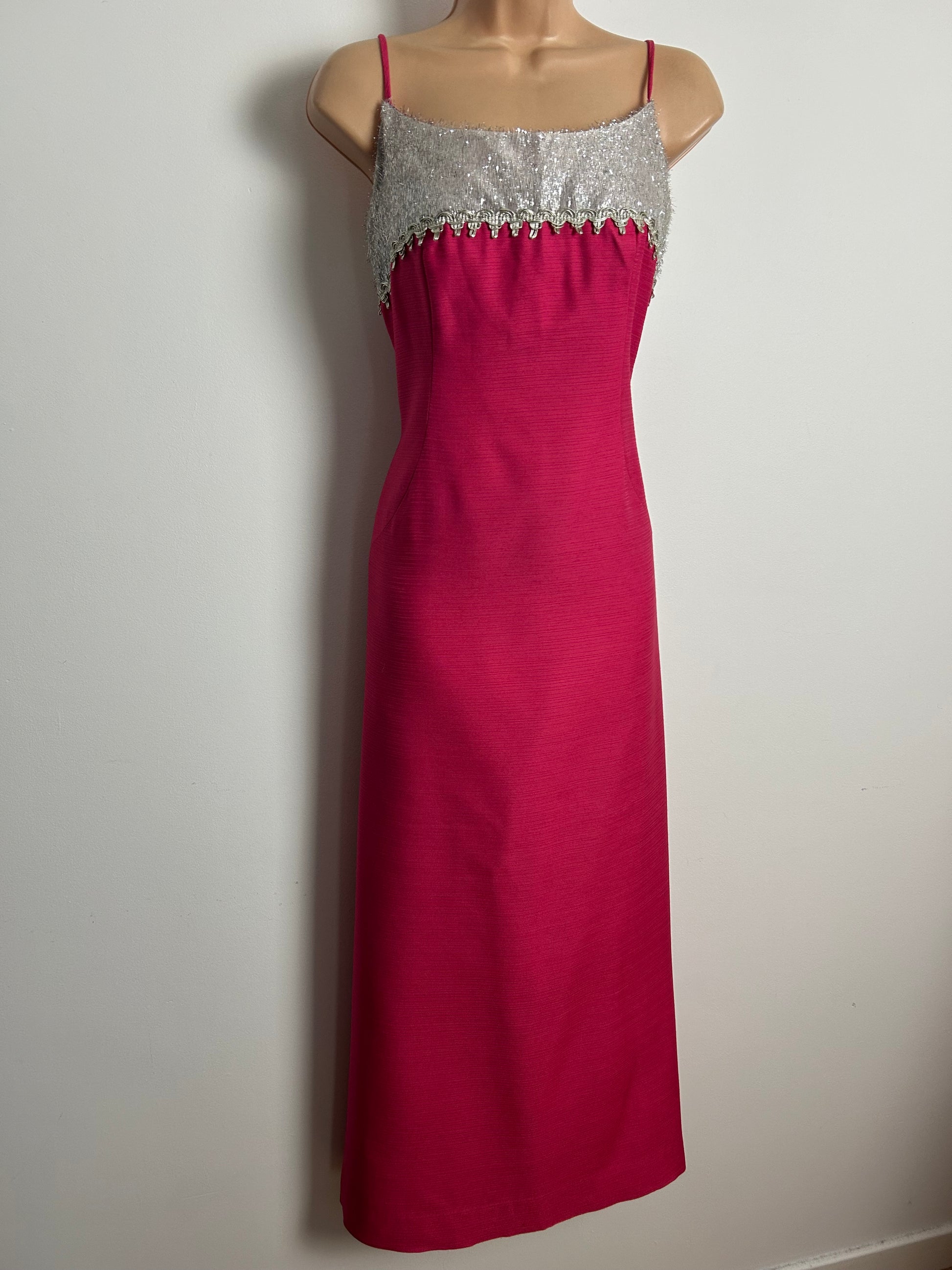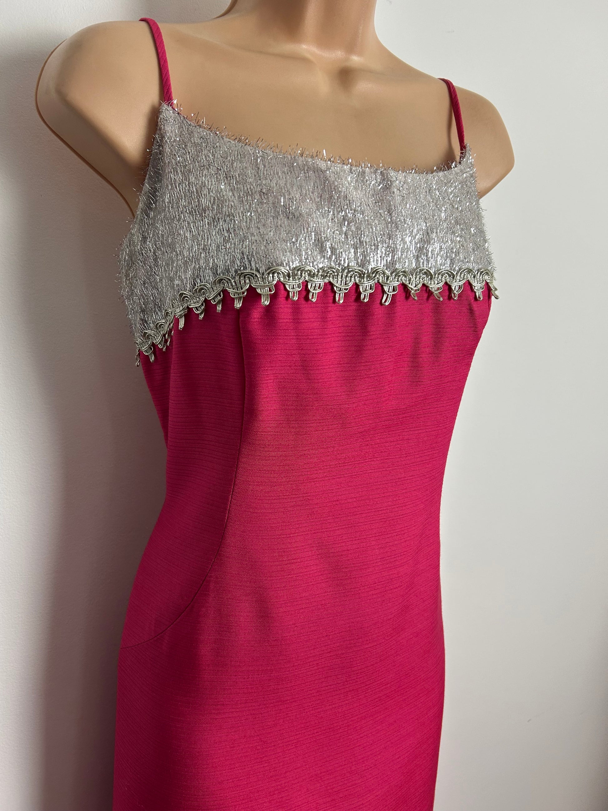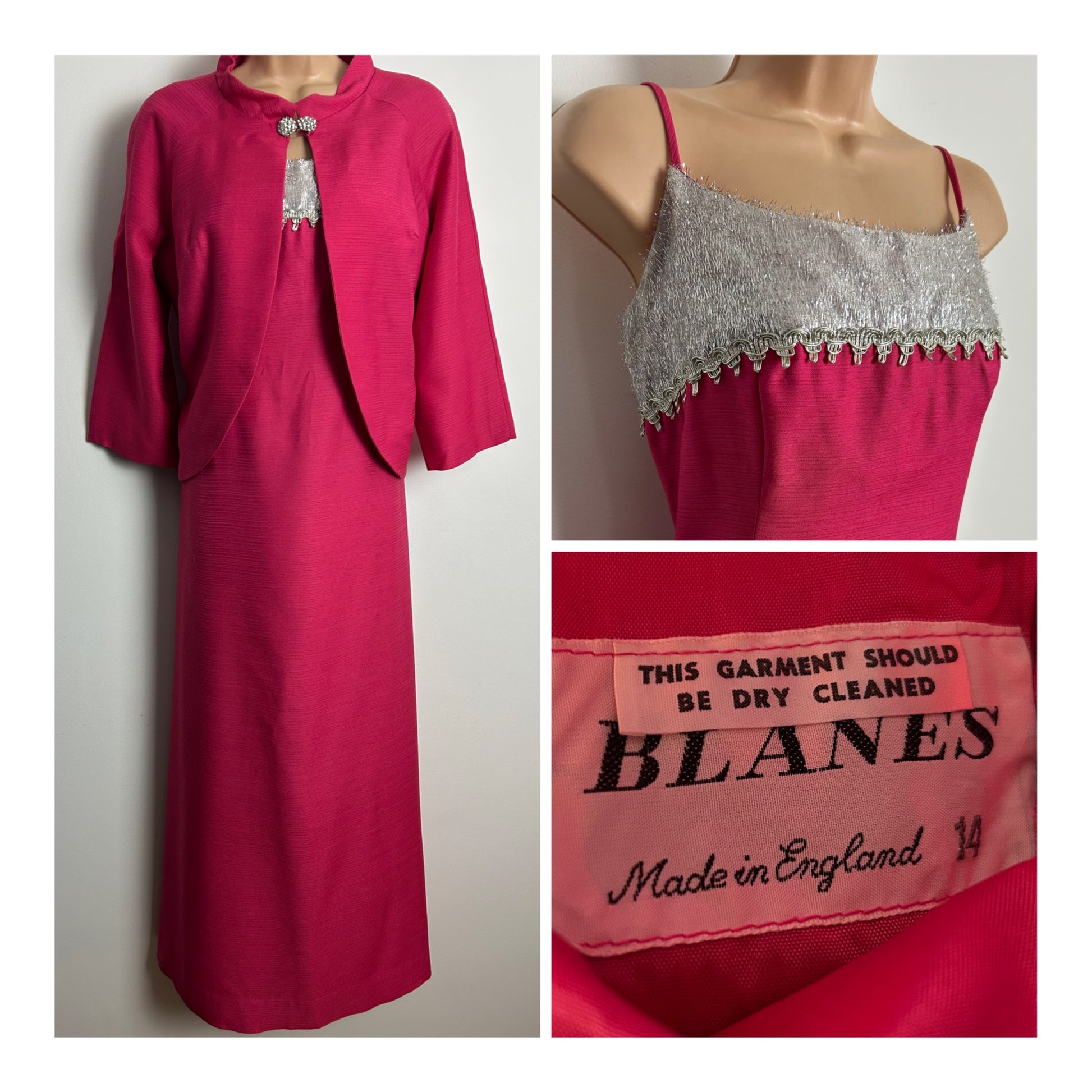 Vintage Early 1960s BLANES Size 10-12 Hot Pink & Silver Tinsel Evening Occasion Dress & Matching Jacket