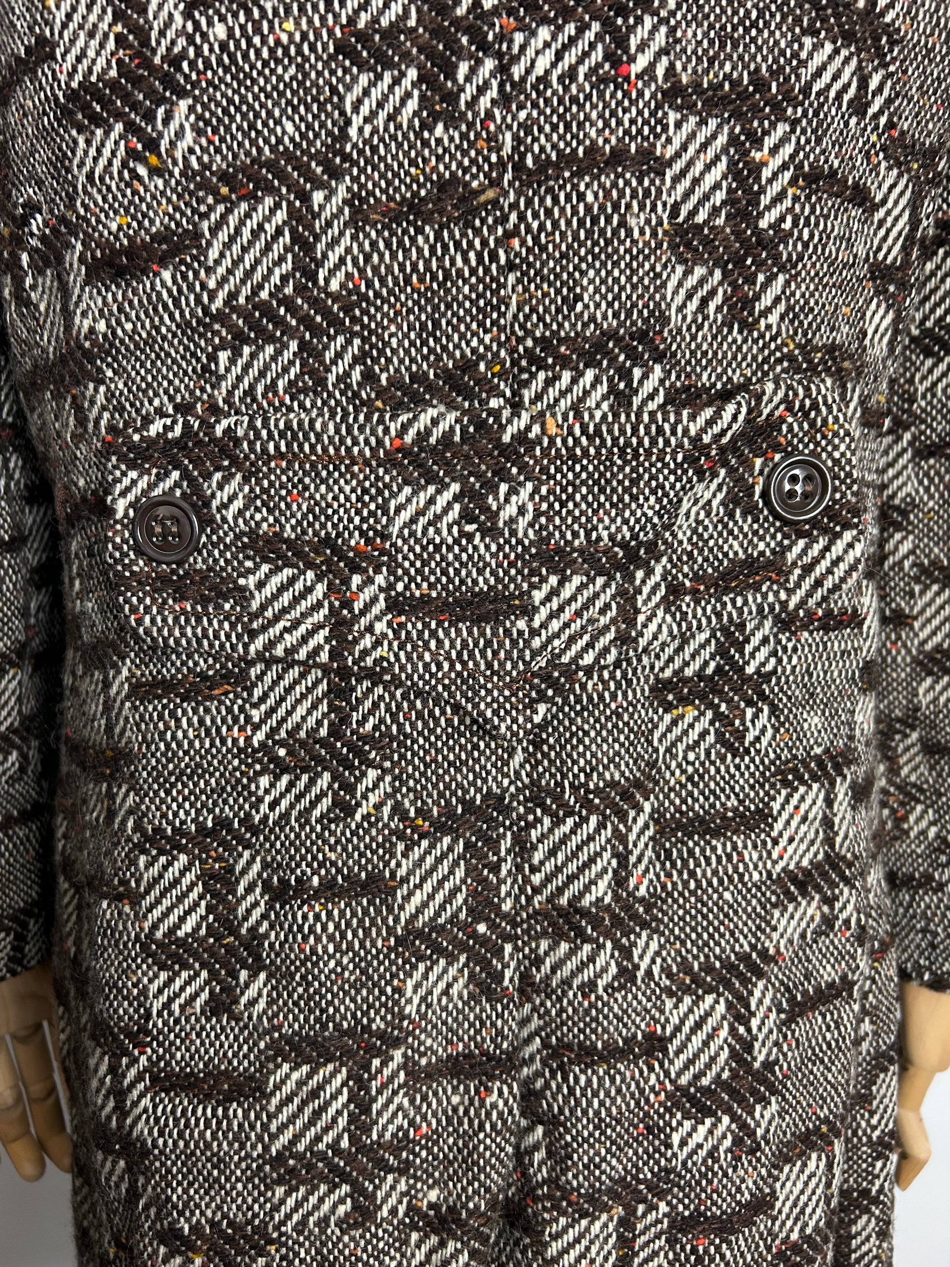This lovely vintage winter coat is made from 70% wool & 30% rayon in brown & white tweed check pattern.