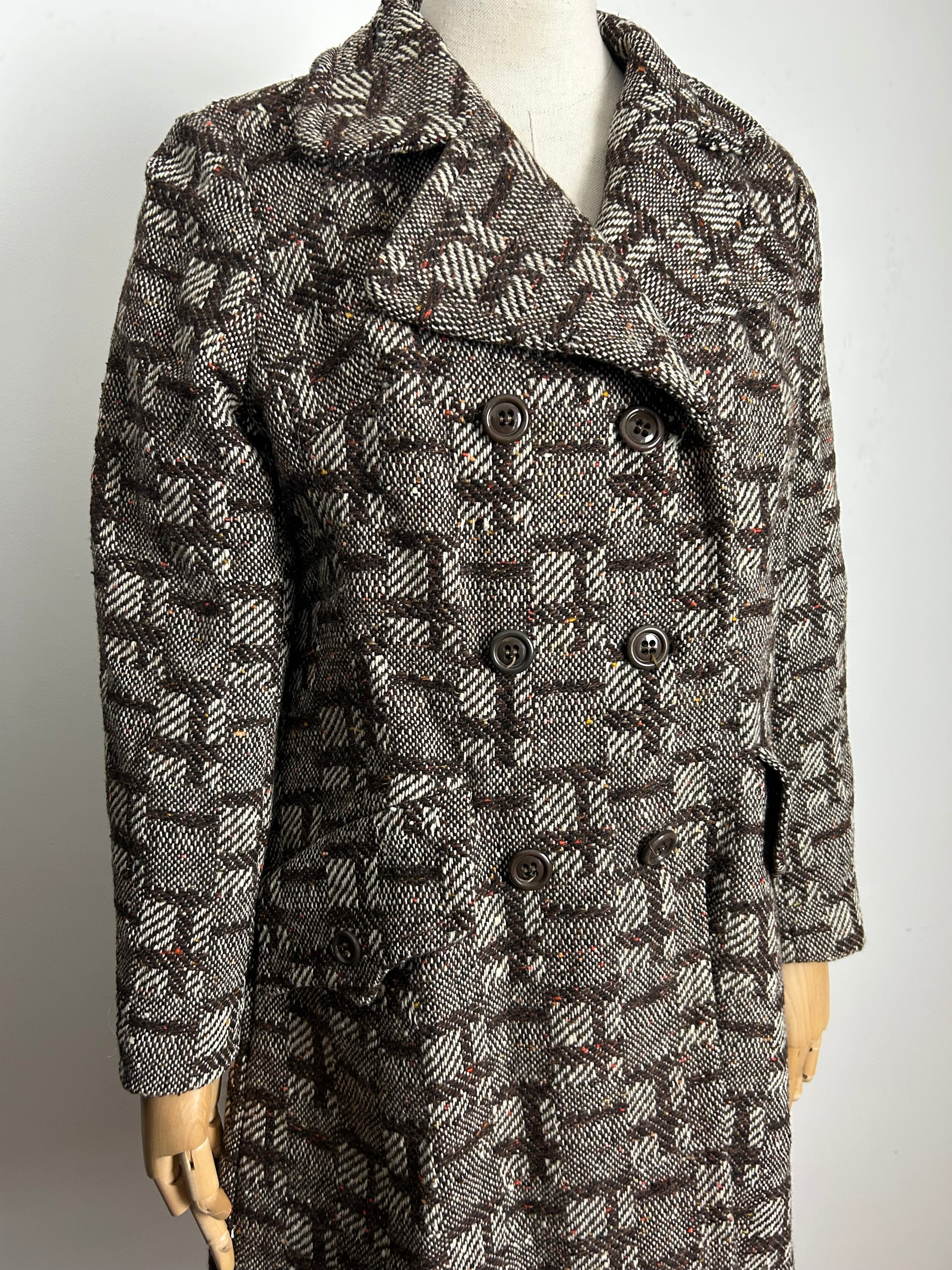 Vintage Early 1970s PEGGY LANE Size 12 Brown Tweed 70% Wool Double Breasted Winter Coat (Small Issue)