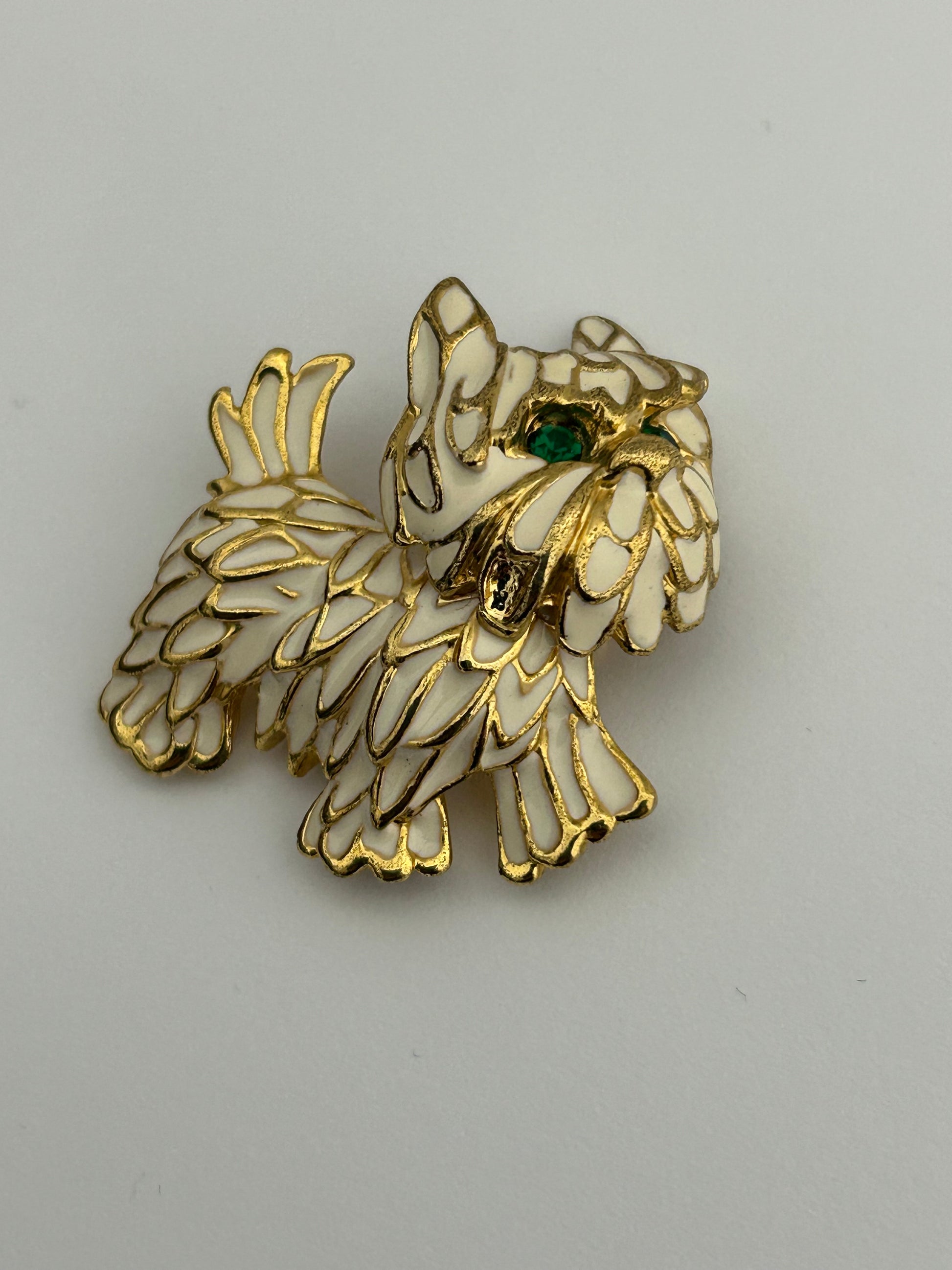 Vintage Gold Tone Base Metal Enamel Highland Terrier Pin Brooch