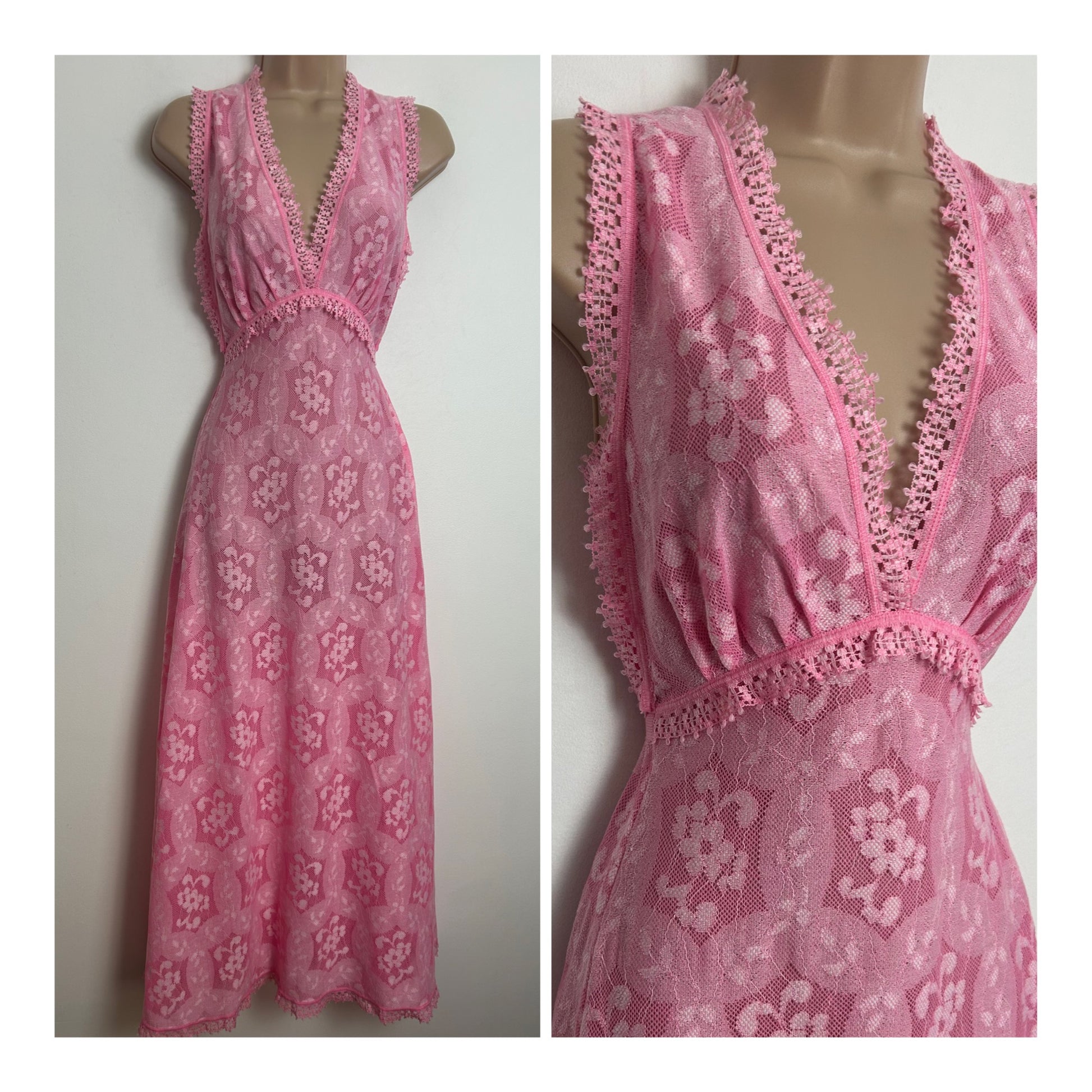 This lovely vintage nightdress is made from a cotton lace fabric in pink.