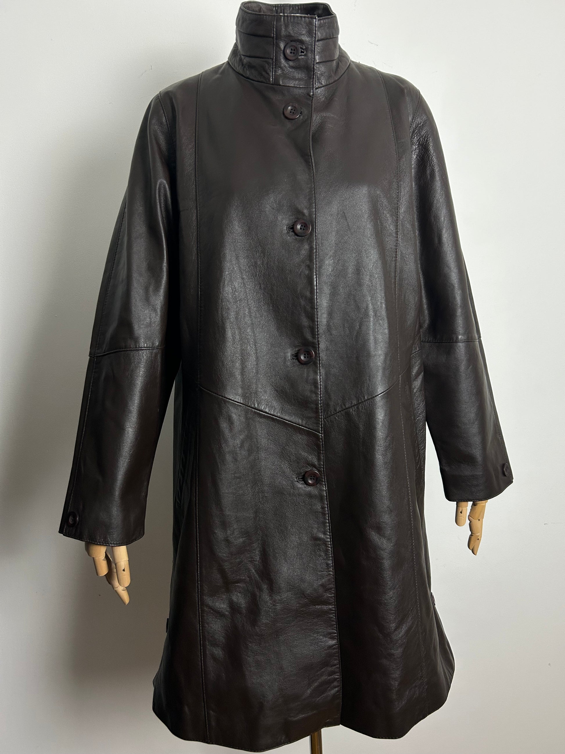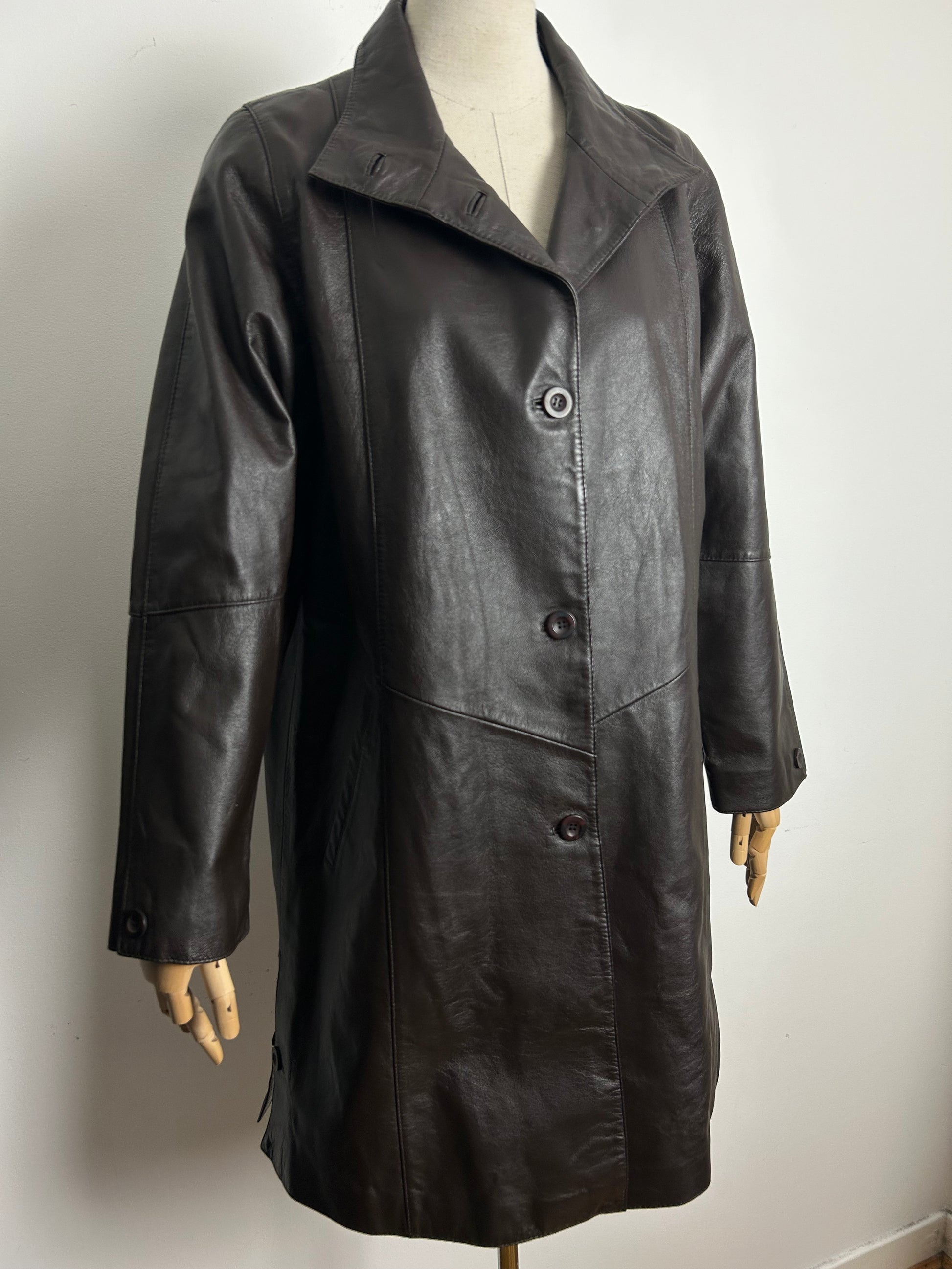 Vintage Late 1980s JULIA ROMA Size 12 Brown Leather Oversized Mid Length Coat