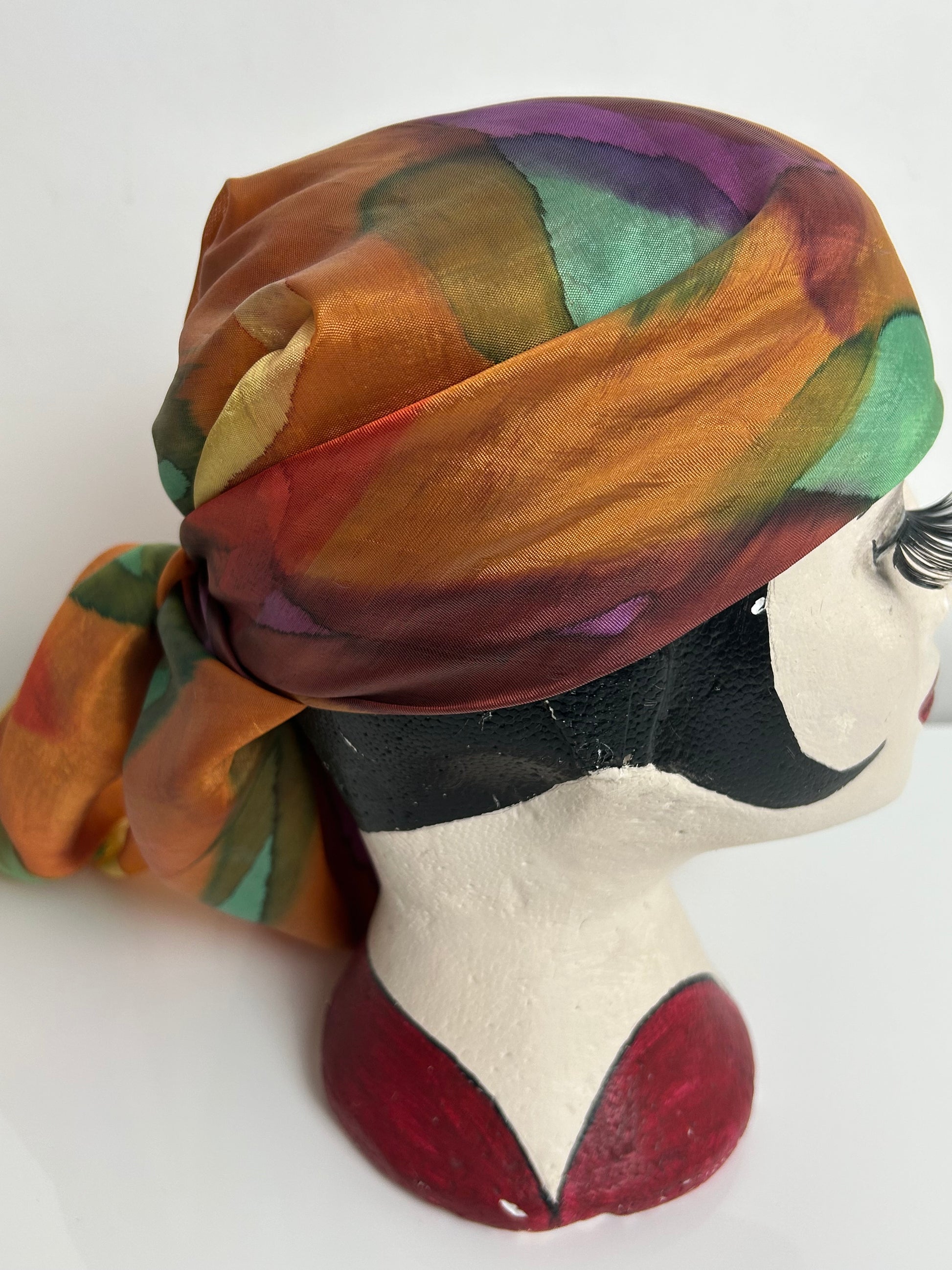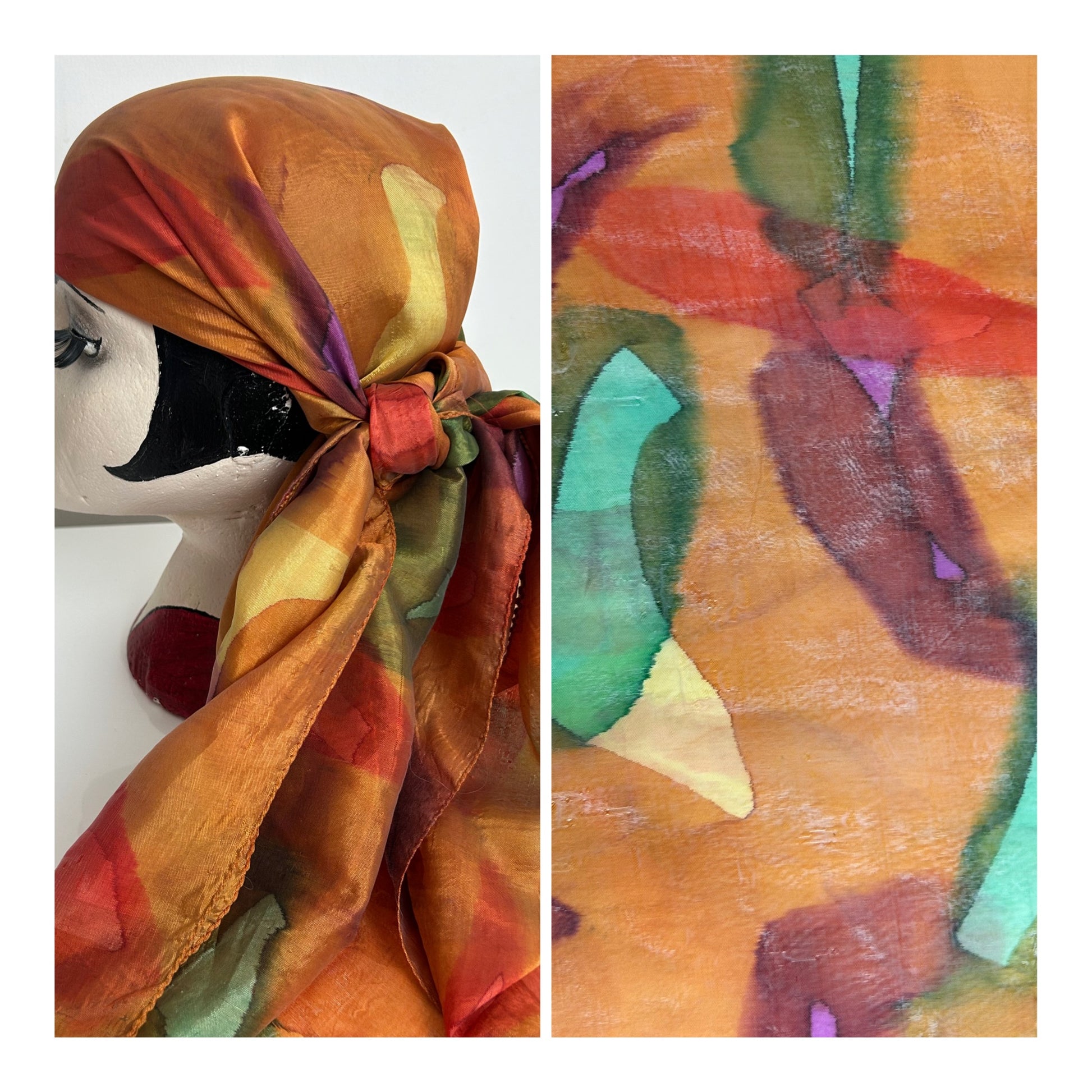 Vintage Orange Green Purple & Red Abstract Print Silky Chiffon Large Scarf 100cm x 92cm