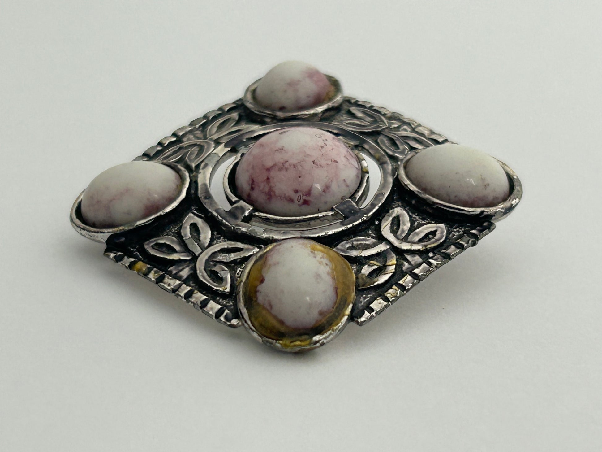 Vintage Silver Tone Base Metal Agate Stone Set Celtic Scottish Brooch