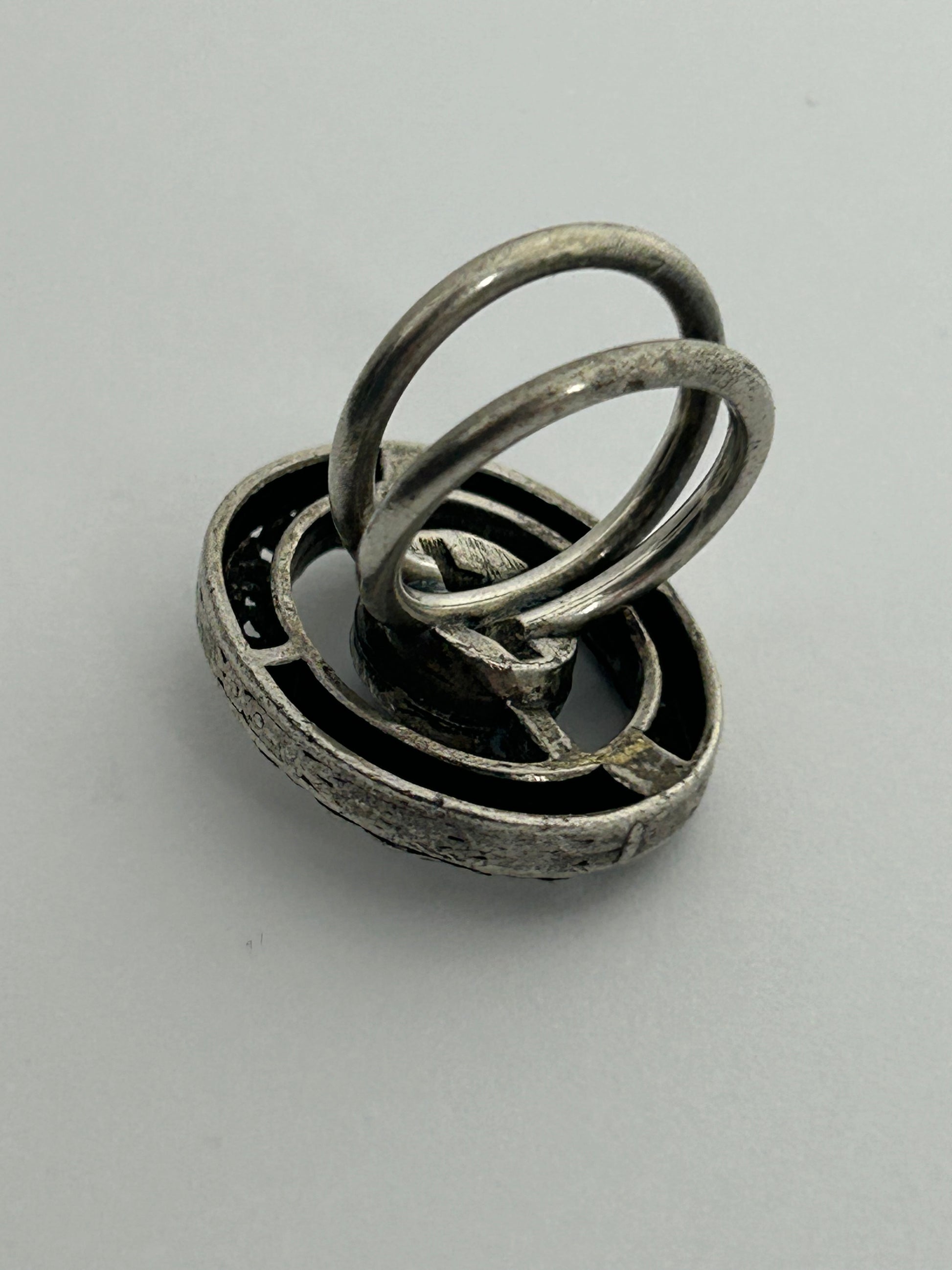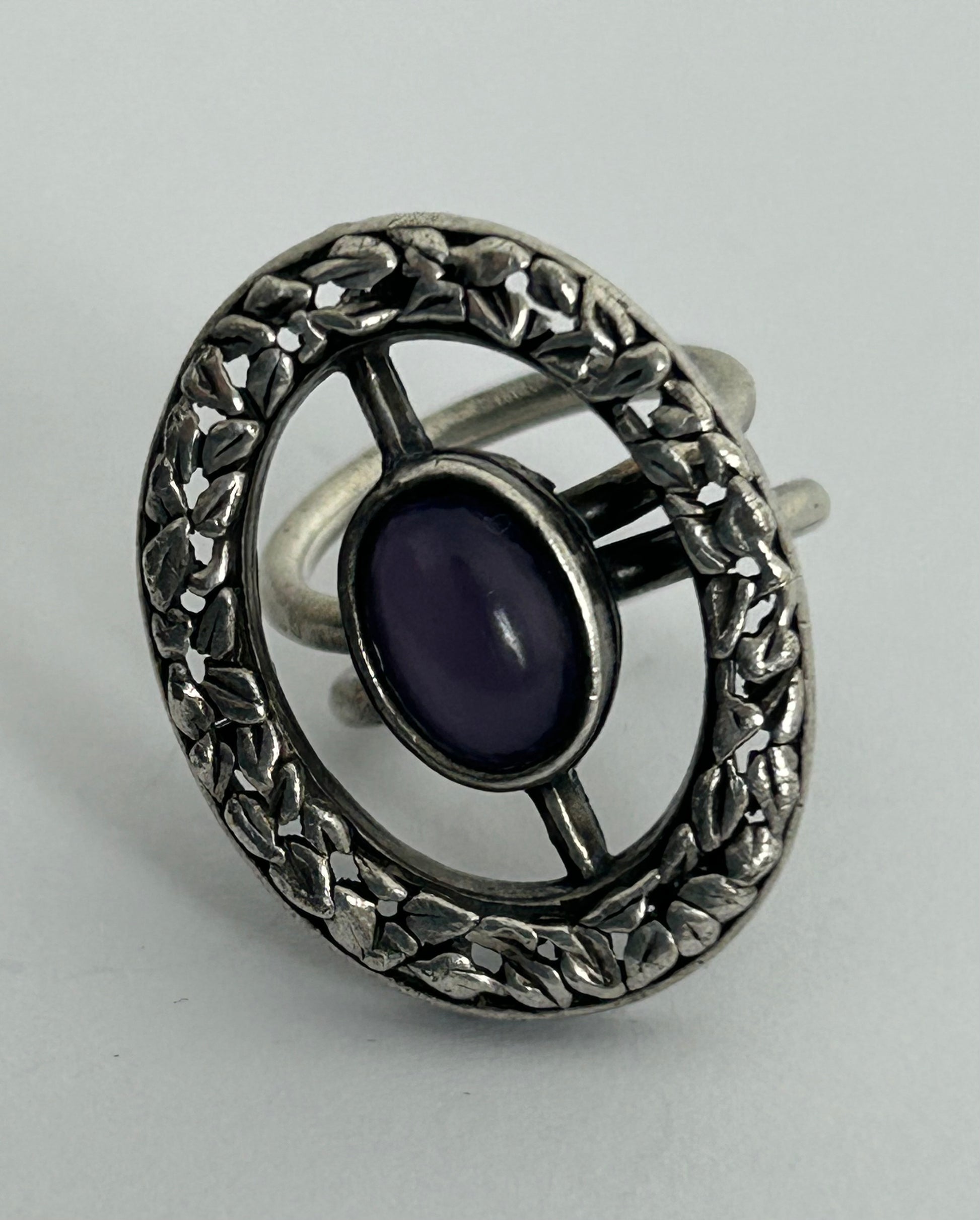 Vintage Silver Tone Base Metal & Lilac Stone Set Scottish Celtic Style Ring Size L