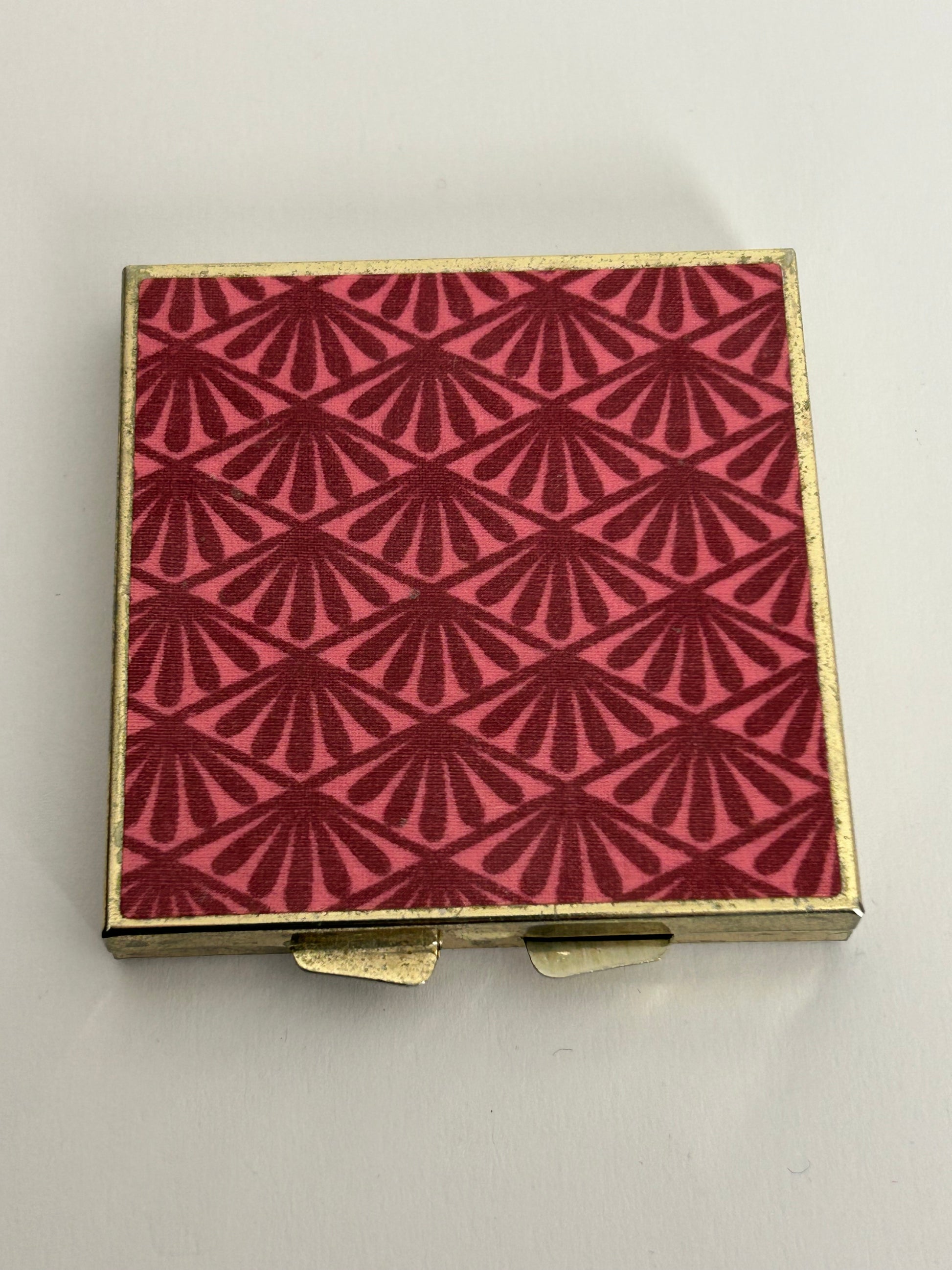 Vintage Silver Tone Base Metal Pink Deco Pattern Square Compact Mirror