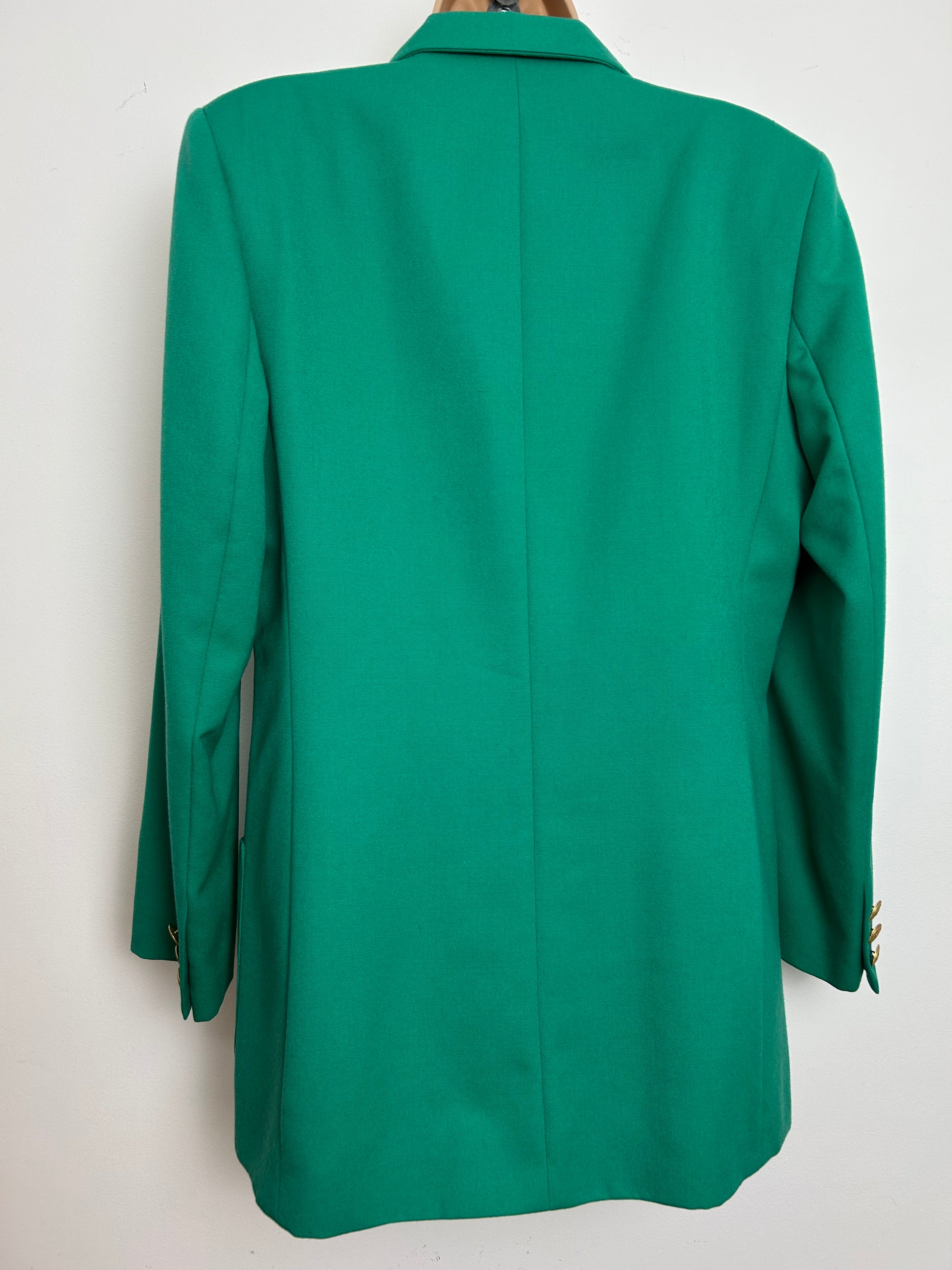 Vintage 1990s ST MICHAEL MARKS & SPENCER Size 12-14 Green Pure Wool Military Style Double Breasted Blazer