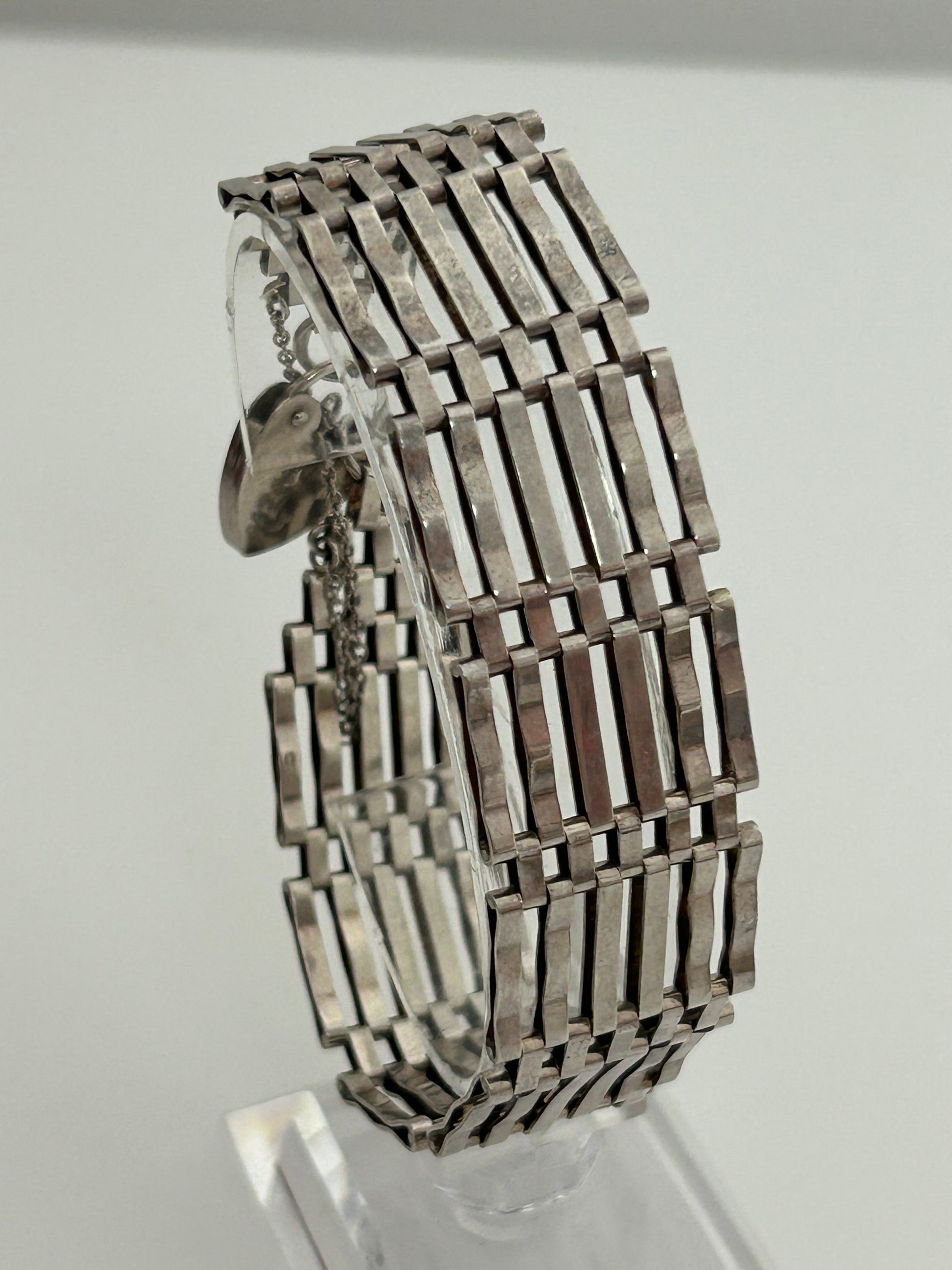 Vintage 1978 ALISTAIR STEWART JEWELLERY Sterling Silver Gate Link Bracelet With Heart Lock