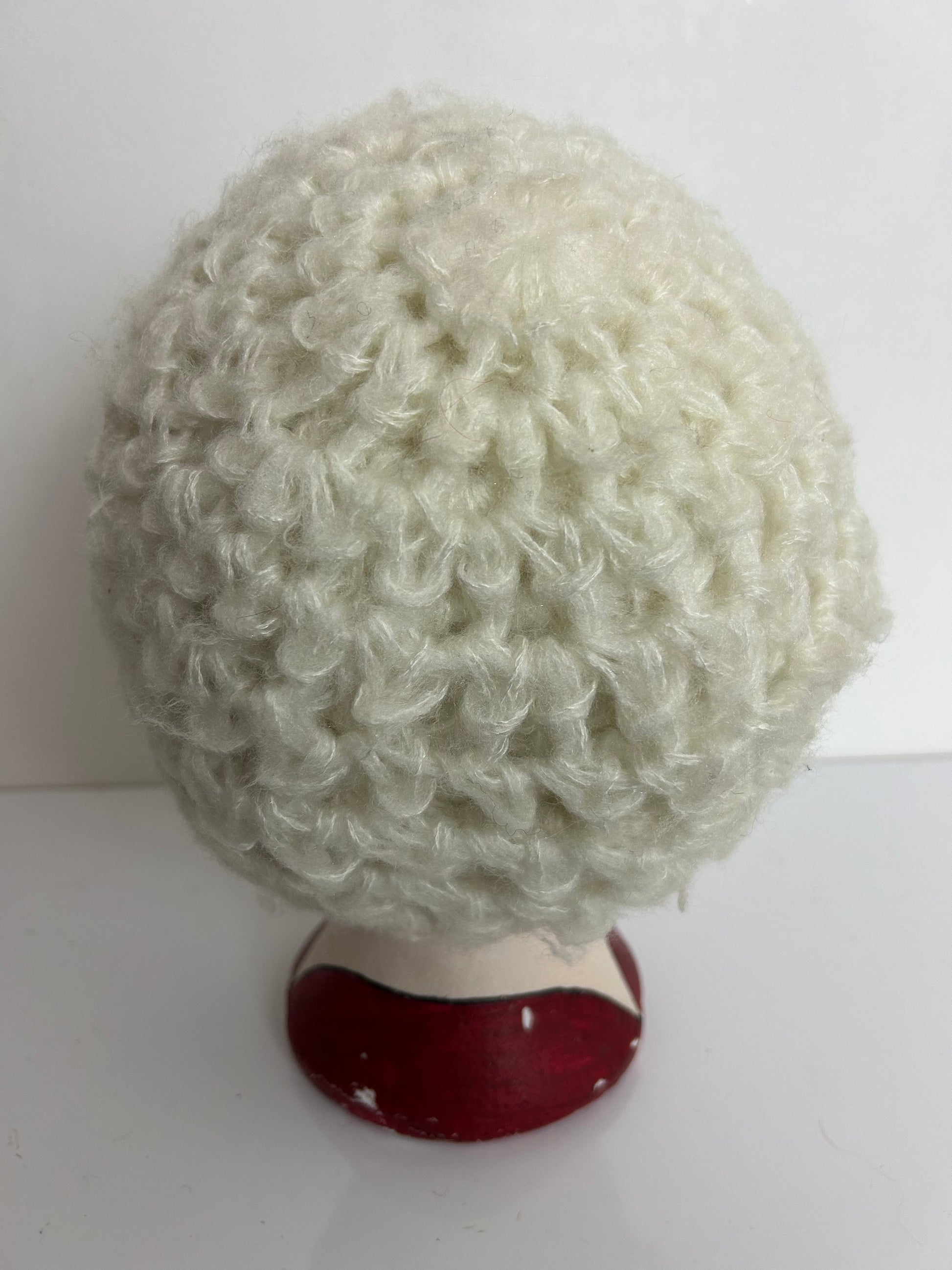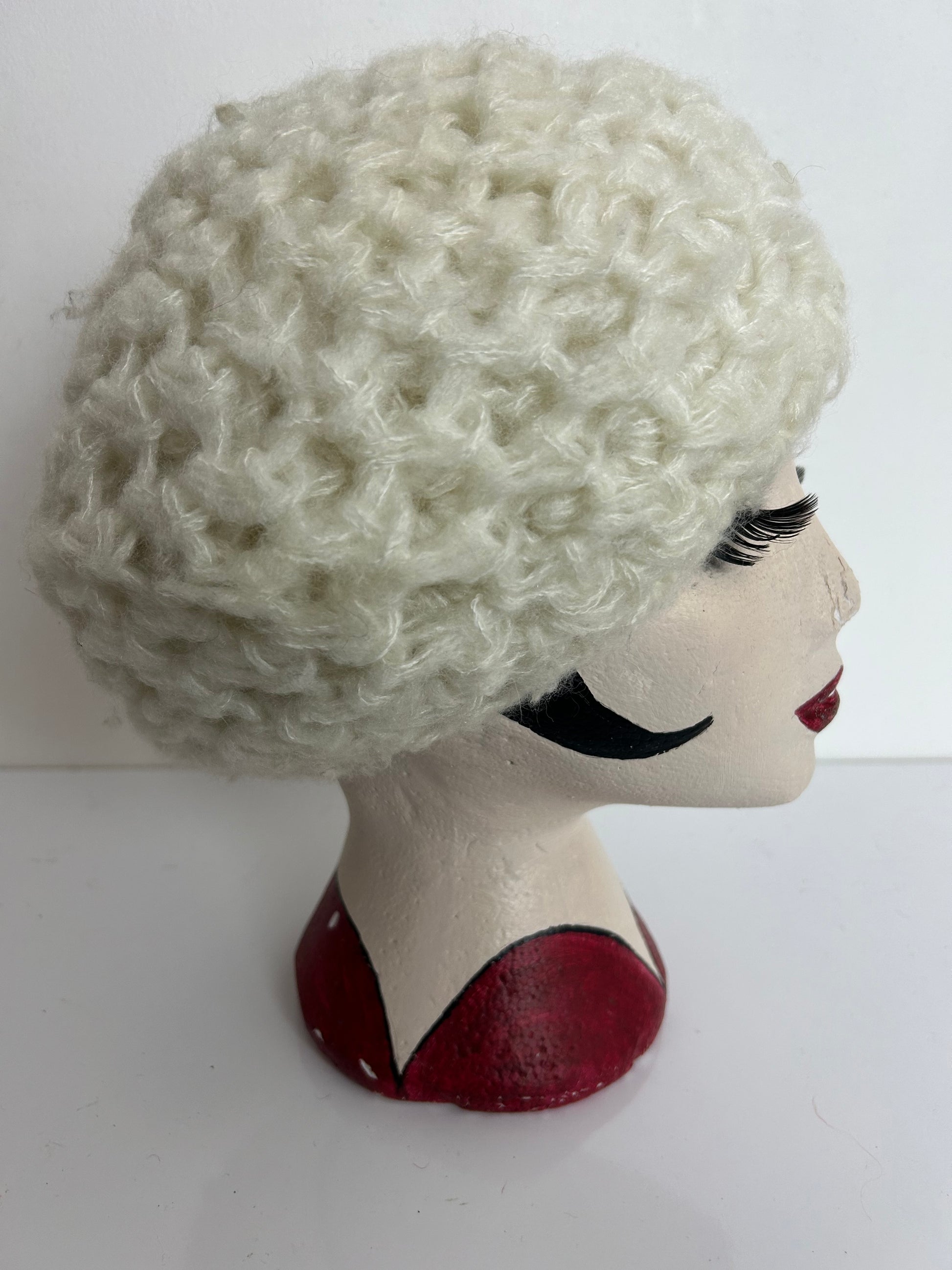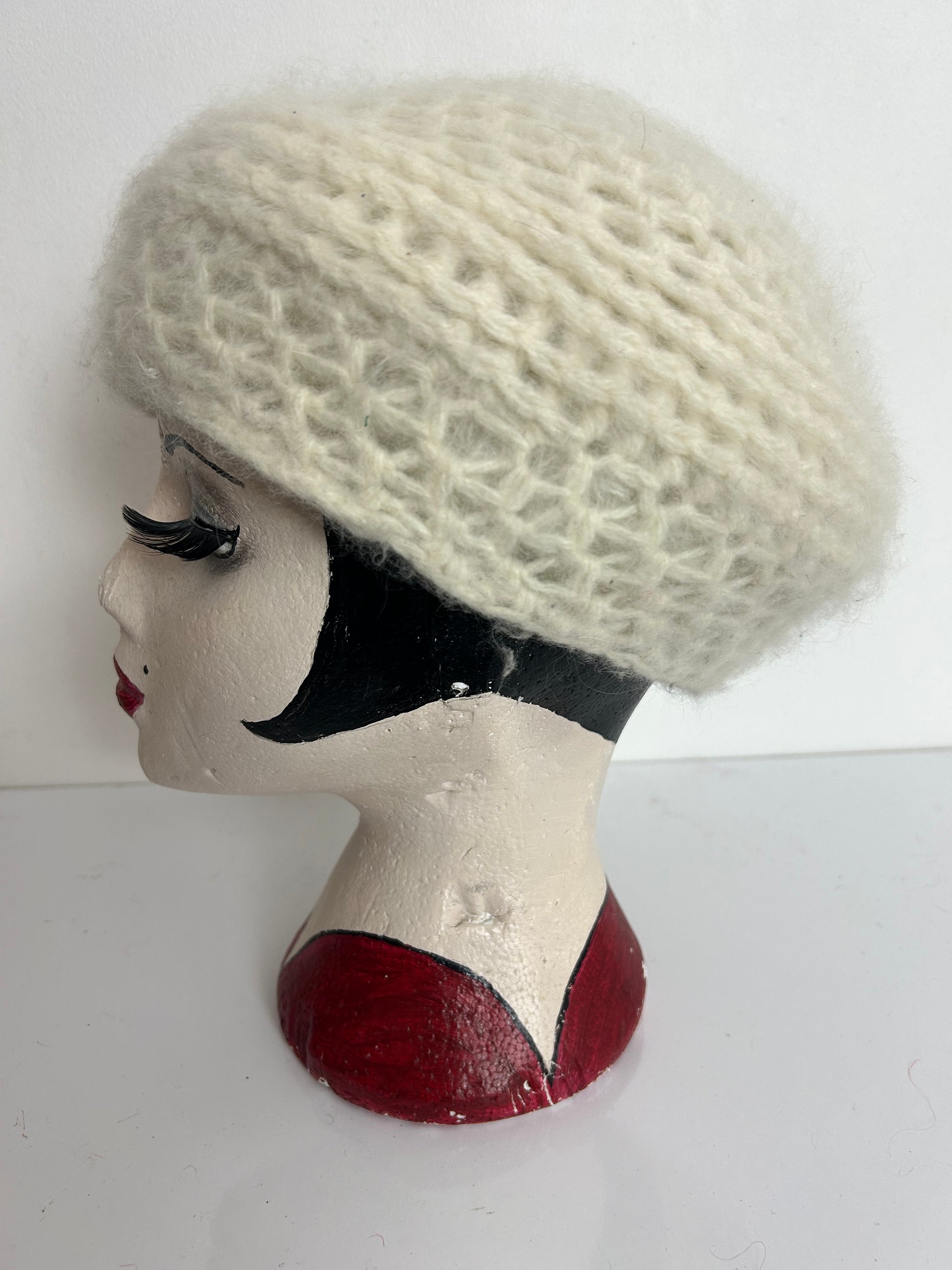 Vintage Winter White Angora & Wool Mix Reversible Beret/Beanie Style Hat
